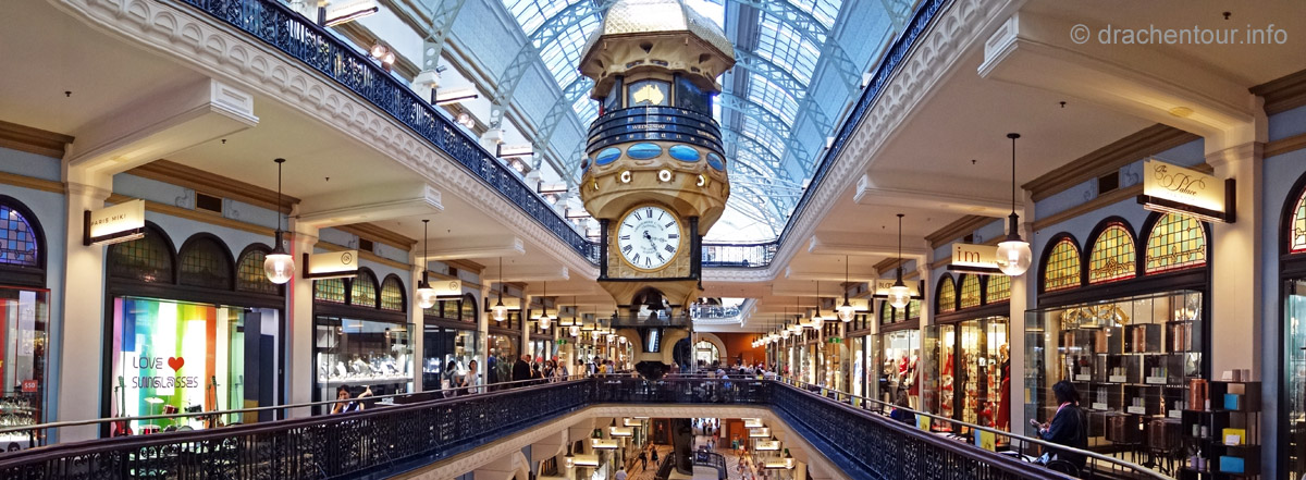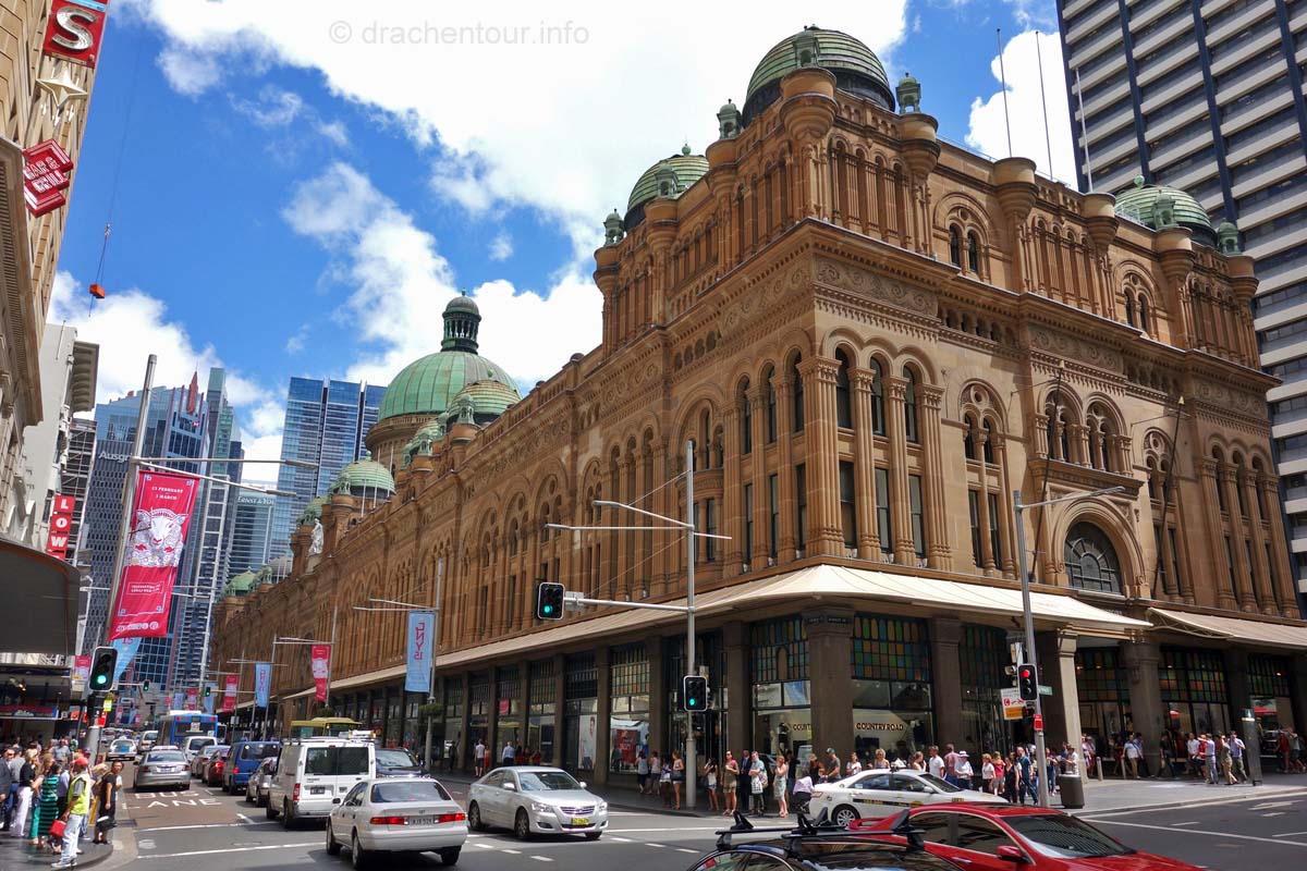 Das Opernhaus ließen wir noch links liegen und gingen weiter in die Haupt-Shopping-Straße, die George Street, denn wir hatten heute noch etwas zu erledigen: mir ist doch tatsächlich bereits in Neuseeland mein nagelneues iPhone aus der Hand gerutscht und am Boden zerschellt. Dummerweise ist dabei das gesamte Display zersplittert, so suchten wir den ersten iPhone Shop in Sydney auf, um irgendeine Lösung zu finden, die nicht ganz so kostspielig ist. Mit wenig Hoffnung betraten wir den riesigen Apple Store und wurden sehr professionell zu einem technischen Mitarbeiter geleitet, der uns mitteilte, dass es wahrscheinlich möglich ist, nur das Display auszuwechseln, und das Ganze für einen einigermaßen passablen Preis von ca. 150 €, da habe ich mich bereits getraut mich ein wenig zu freuen. Die Freude hielt nicht lange an, denn der Mitarbeiter begann zu zweifeln und gab zu Bedenken, dass eventuell auch die Sensoren kaputt sein könnten, und dass überhaupt noch mehr beim Auswechseln kaputt gehen könnte. Nach einem langen Gespräch mit dem Chef Techniker kamen sie zum Entschluss, dass es das Beste wäre, ich würde ein neues Gerät bekommen. Glücklicherweise hatten sie genau mein Modell in Sydney, allerdings in einem anderen Laden. Das war kein Problem, die Apple Leute klärten alles ab und wir machten uns auf den Weg zum neuen iPhone, dass mich übrigens auch nur ca. 150 € kosten sollte, da kam erneut Freude auf. Und dieses Mal war sie auch sehr berechtig, denn es klappte und wurde sogar noch getoppt, denn der Mitarbeiter hatte irgendwie im PC vergessen einen Preis einzutragen, das bedeutete für mich, ein nagelneues heiles Gerät für Null Komma Null Euro - was für ein Glück, ist ja fast schon unfassbar. Auch Marek, ein bekennender Apple Kritiker zeigte sich von dem Einsatz und der Freundlichkeit der Apple Gemeinde durchaus beeindruckt :-) .