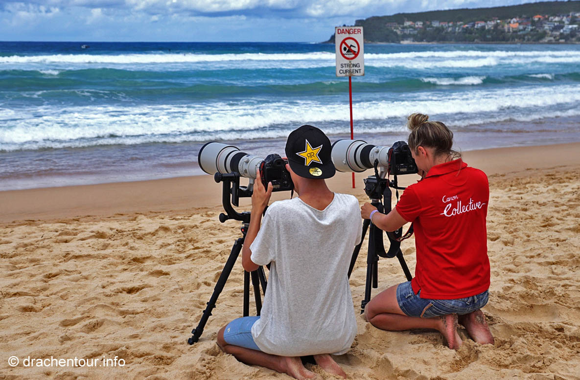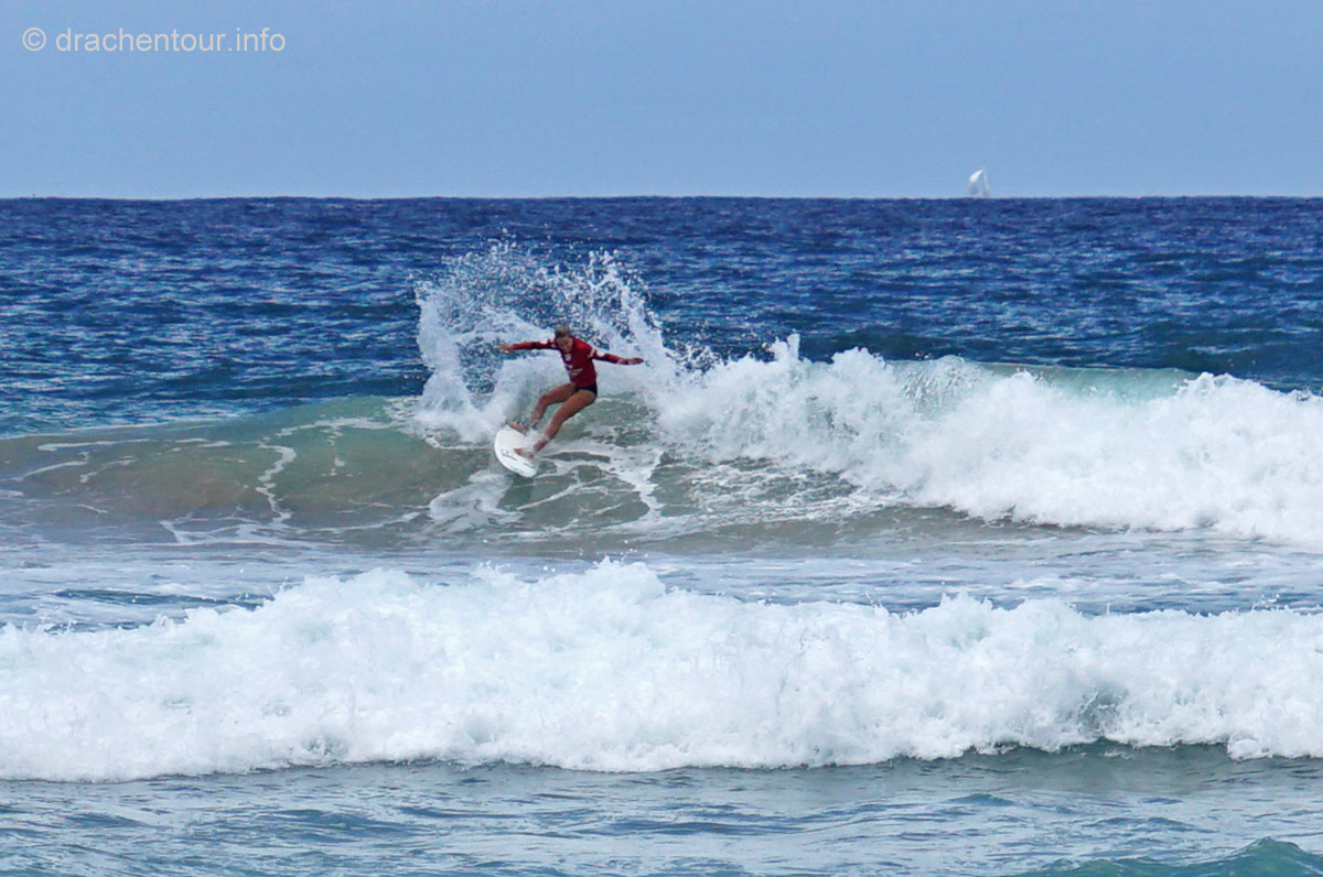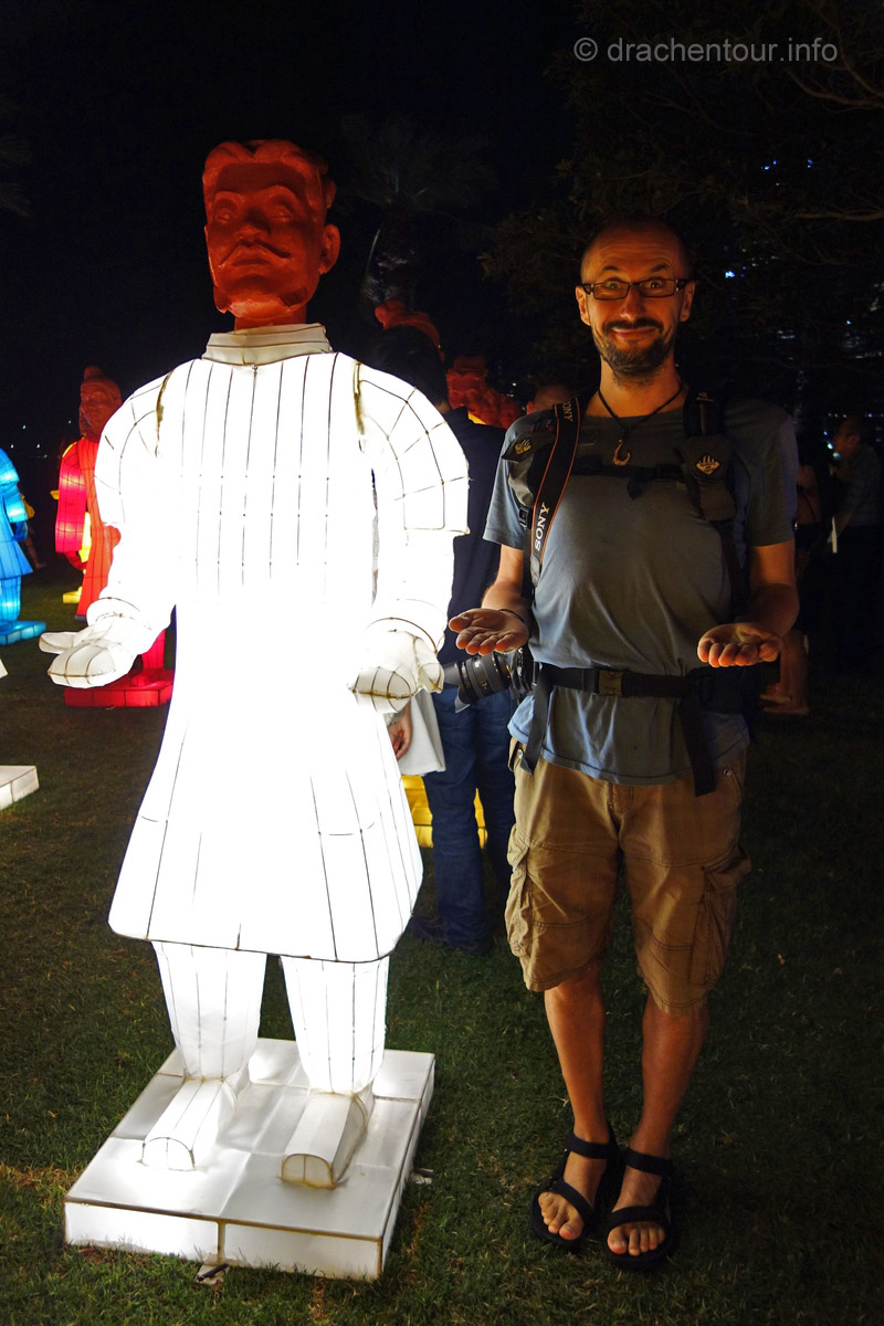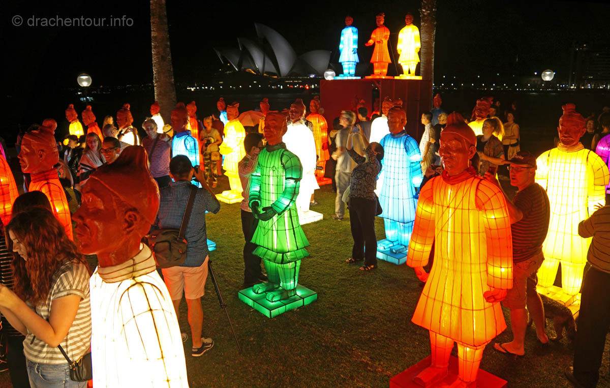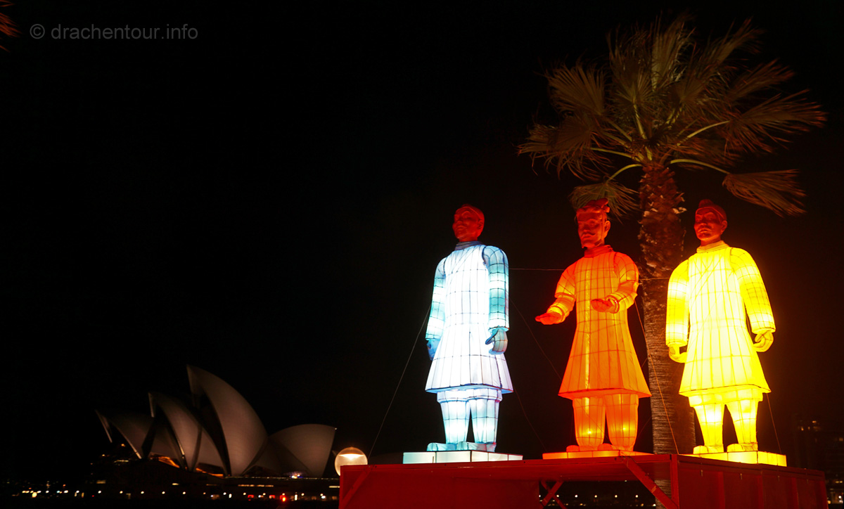 Nach so viel Stadt mussten wir mal unbedingt wieder etwas raus in die Natur, so fuhren wir mit der Fähre in das gemütliche Manly. Die Surfer-Szene macht diesen Strandabschnitt besonders attraktiv, vor allem in dieser Woche, denn es finden die „Australien Open of Surfing“ statt. Zur richtigen Zeit am richtigen Ort :-). Fast den ganzen Tag verbrachten wir dort und bewunderten die Surfer, wie leicht und akrobatisch sie über die Wellen glitten. Parallel hierzu fand auch eine Skateboard Meisterschaft statt und wir konnten die Durchgänge der über 40ig jährigen beobachten, schon gut, was die älteren Herrschaften sich in der Halfpipe noch zutrauen und können. Marek, begeistert von Sportfotografie, tobte sich im wahrsten Sinne des Wortes fotografisch bis zur Erschöpfung aus und hatte eine Mega-Freude, wenn ihm auch das passende Objektiv fehlte, denn dieses war in Freiburg. Auf dem Heimweg kamen wir doch tatsächlich an einem Aldi vorbei, das fanden wir voll lustig und mussten es natürlich auch festhalten und es gab sogar die lecker Moser Schocki – yammi ! Pünktlich am Abend um 19:30 Uhr waren wir dann am Fuße der Harbour Bridge, denn genau heute begannen die Feierlichkeiten zu Ehren des Chinesischen Neuen Jahres. Hierfür hatte man illuminierte Terrakotta Krieger aufgestellt und wichtige Menschen der Regierung Australiens, sowie chinesische VIPs hielten eine Ansprache, Drachen tanzten und als die Sonne hinter dem Horizont verschwand, begrüßten die Chinesen mit lauter Musik und Böllern das neue Jahr der Ziege. Und als krönender Abschluss wurden die Terrakotta Krieger beleuchtet, das war echt ein gelungene Aktion und ein toller Anblick – super !