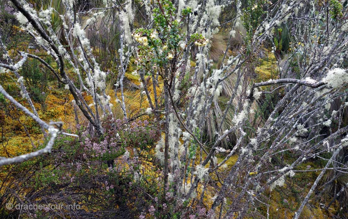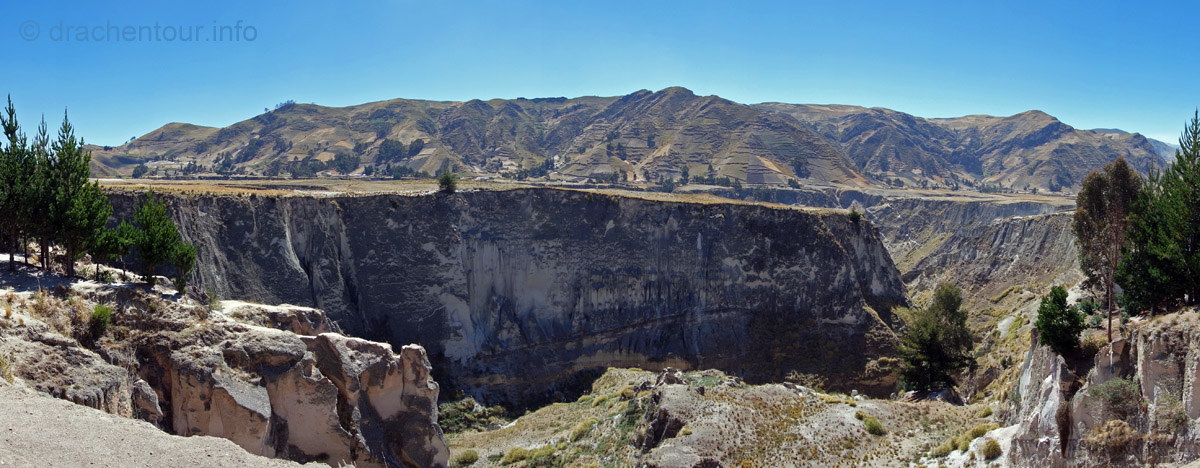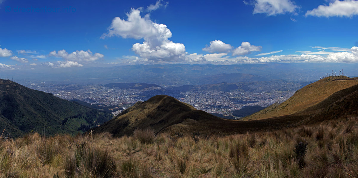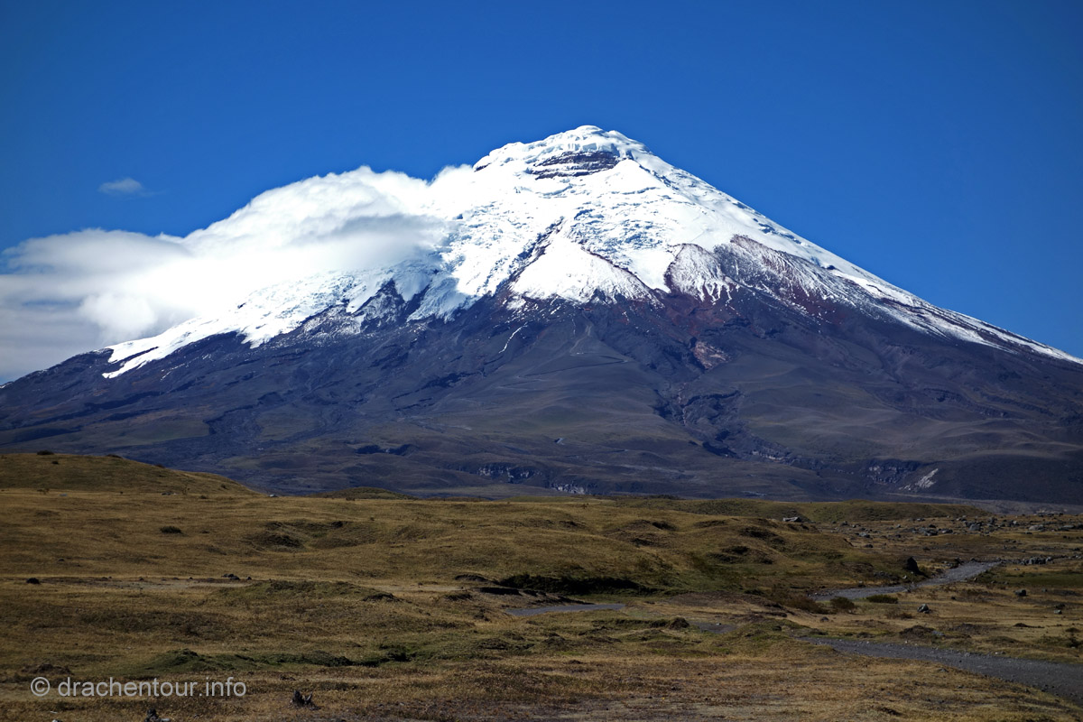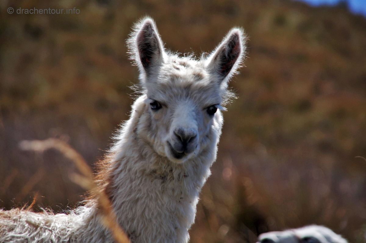 Die Fahrt führte durch trockenes und karges Hochland auf fast 4000 Höhenmetern ! Die Landschaft ist großartig und vielfältig; zunächst ging es durch Flickenteppiche aus Feldern und Wald hoch zum Paramo mit seinen im Wind schwingenden Gräsern. Unterwegs passierten wir ein Dorf namens Tigua, welches durch Malereien vom Leben auf dem Land auf Schafsleder zu weltweiter Berühmtheit gelang. Vorbei ging es weiter an den immens großen Rio Tachi Canyon und nach einer zweistündigen Fahrt erreichten wir dann die Lagune: der See schimmerte smaragdgrün (das liegt an den Mineralien im See) und bei strahlendem Sonnenschein konnten wir sogar die Vulkane Illiniza und Cotopaxi sehen - wiedermal ein unglaublich schönes Naturphänomen !