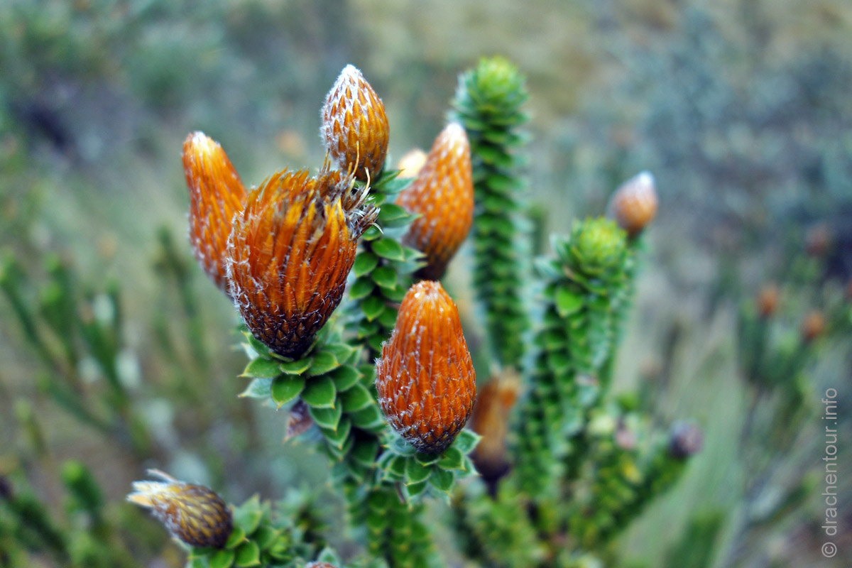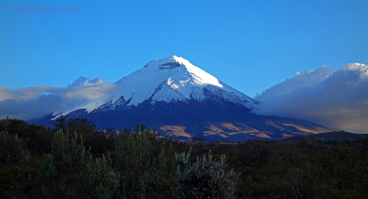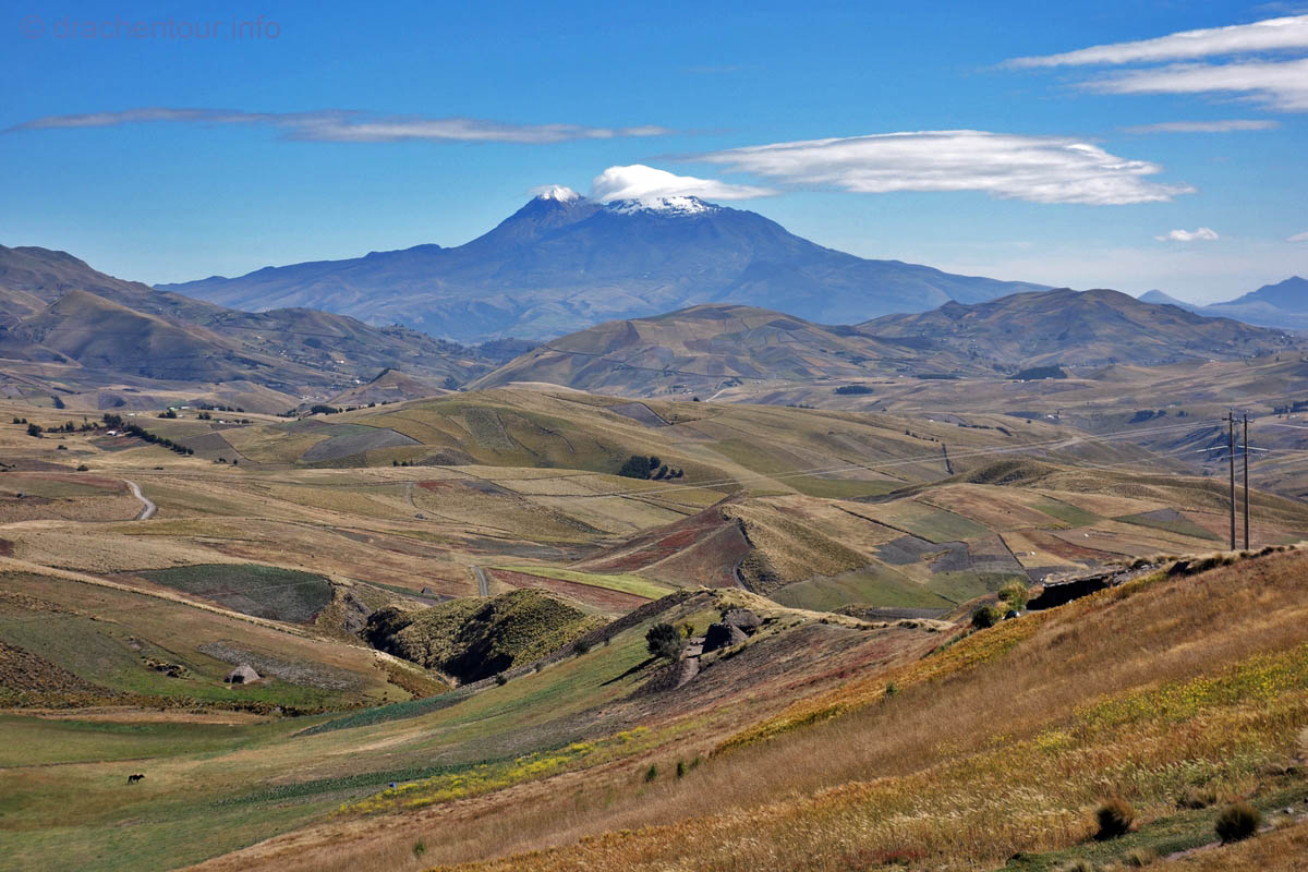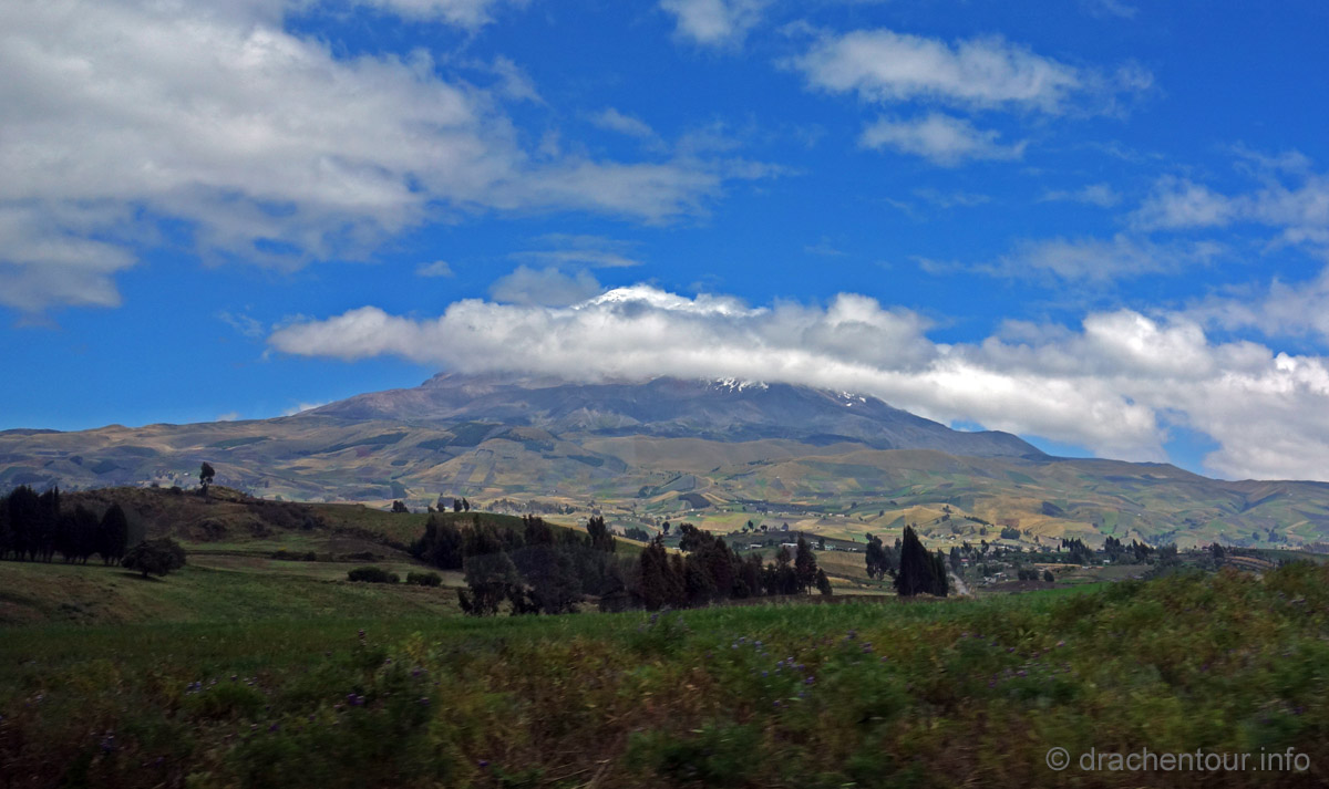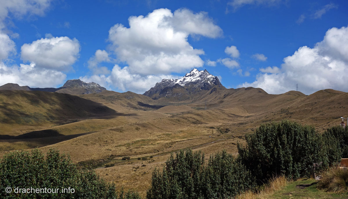 Endlich fuhren wir mit dem Bus mal so richtig kreuz und quer durch die Anden. Sieben Stunden waren wir unterwegs und diese Fahrt ist wahrlich nichts für schwache Mägen, denn es folgte Kurve um Kurve und wir waren als Mitfahrer gefordert nicht von den Sitzen zu rutschen. Die unsagbaren schönen Landschaften (wie zum Beispiel der Chimborazo - höchster Berg Ecuadors mit 6310 m - und eigentlich der ganzen Welt, wenn man vom Erdmittelpunkt aus misst ! ) ließen uns aber über diese Anstrengungen locker hinwegsehen.