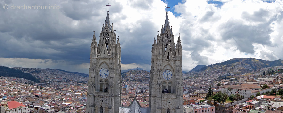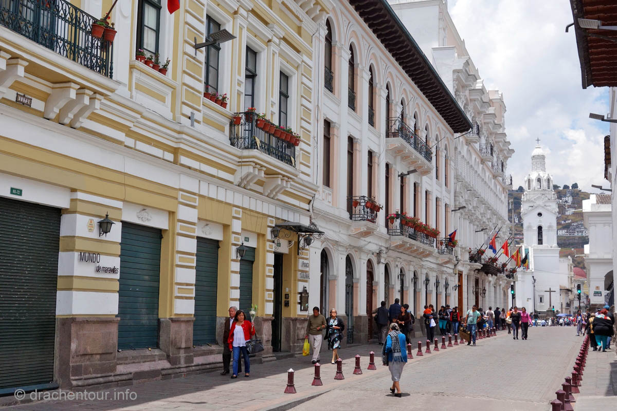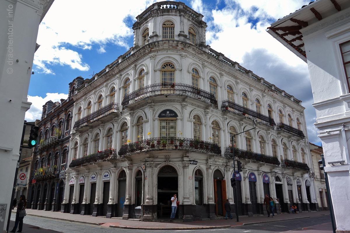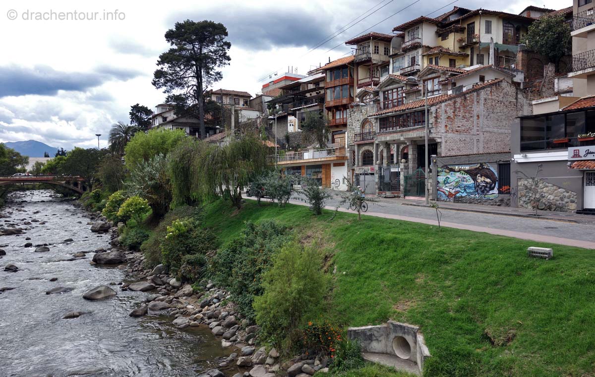 Sehr oft wird die koloniale Pracht Cuencas mit Quito verglichen, doch Cuenca schneidet laut den Reiseführern besser ab, weil sie mehr Charme zu bieten habe, deshalb wird sie auch gerne liebevoll "die Perle des Südens" genannt. Uns erinnert sie doch ein wenig an Freiburg, denn auch hier gibt es kopfsteinpflasterte Straßen und mitten durch die Stadt schlängelt sich ein kleiner Fluss, ganz nach dem Vorbild der Dreisam.