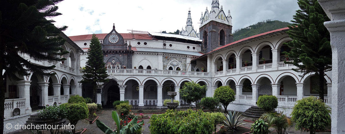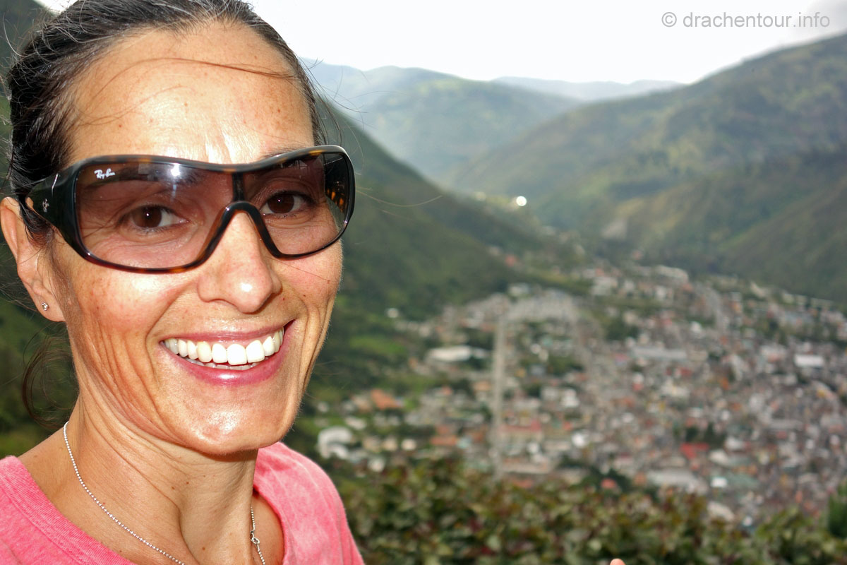 Schon mal die Fahrt von Latacunga nach Banos war zauberhaft schön, denn wir fuhren bei strahlend blauem Himmel und einer tollen Fernsicht die Avenue der Vulkane entlang - wir konnten uns an diesen Giganten kaum satt sehen. Da wir Mareks sich langsam verbessernden Gesundheitszustand nicht gefährden wollten, gönnten wir uns für diese 85 km ein Taxi. Das war sehr bequem, schnell und die Frau + Kinder unseres Taxifahrers hatten auch einen schönen Familienausflug, denn die drei fuhren alle auf dem Beifahrersitz mit.