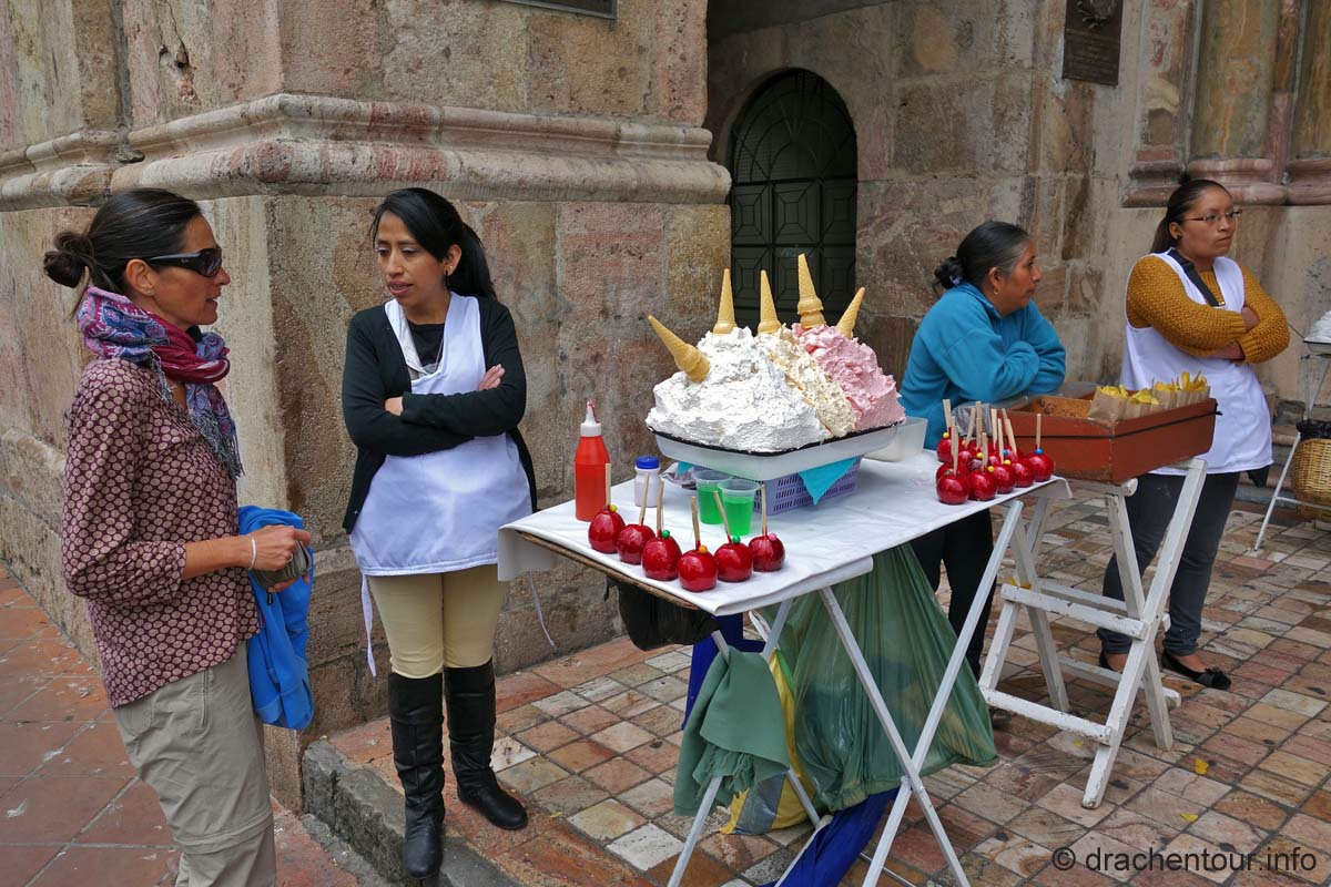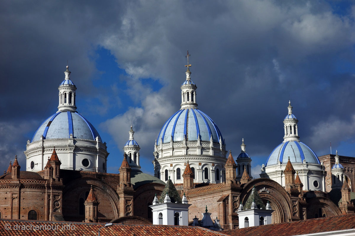 Wir waren nicht ganz so beeindruckt von Cuenca und finden, dass das Städtchen etwas überbewertet wird. Dennoch hatten wir eine schöne Zeit hier. Wir bummelten durch die Straßen und entlang des Flusses Tomebamba, genossen den Ausblick auf die grandiosen blauen Kuppeln der neuen Kathedrale und schlürften lecker Eis, denn an jeder Ecke gibt´s hier Eisdielen mit riesen Menschenschlangen davor (nach einer leckeren Kugel Eis, wissen wir auch warum ! ).