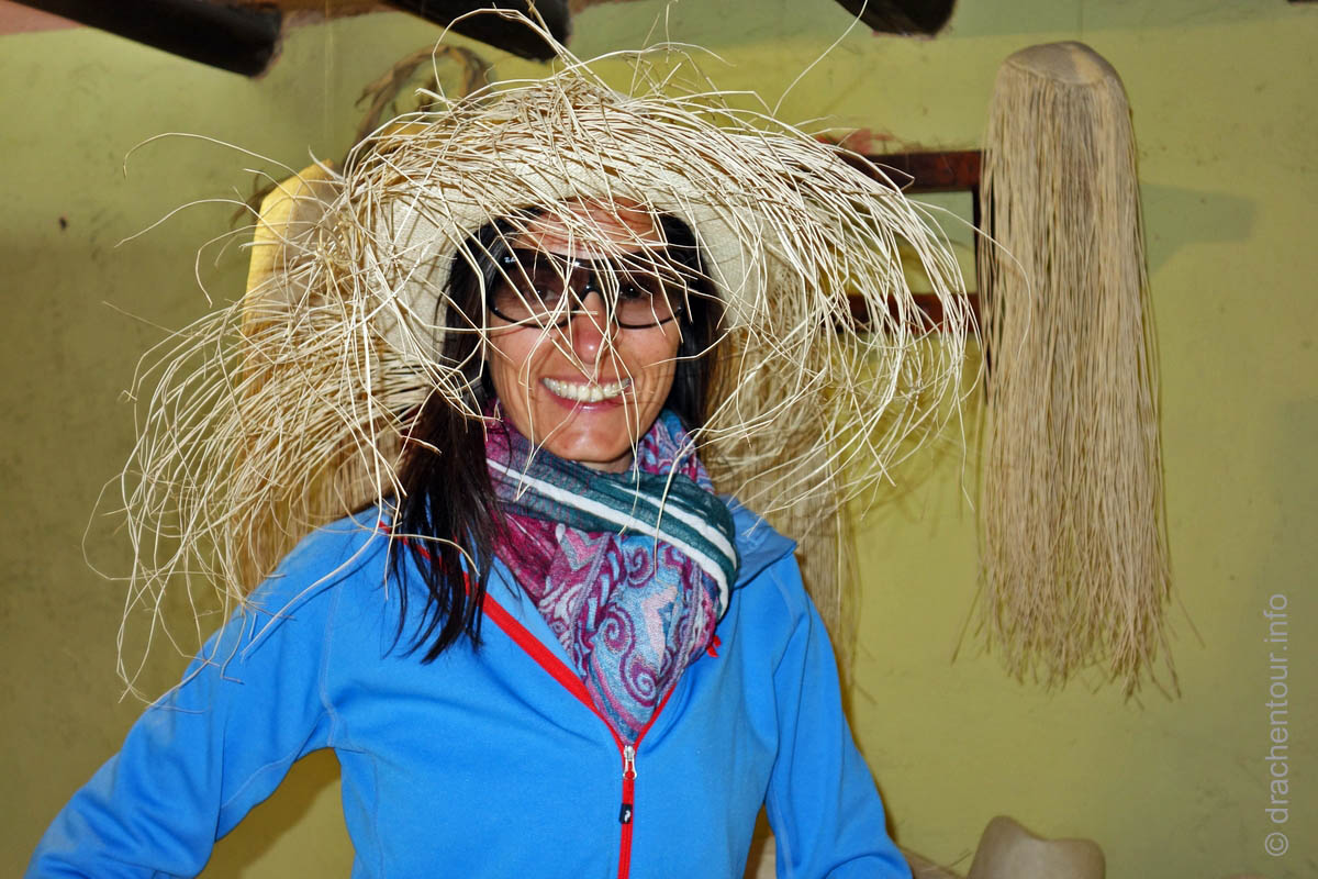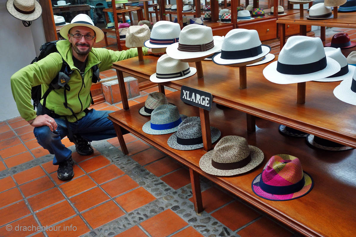 An unserem Kulturtag waren wir leider nicht ganz so erfolgreich, weil zwei Museen der drei, die wir besichtigen wollten geschlossen waren bzw. gerade renoviert wurden. Glücklicherweise blieb uns noch das "Museo del Sombrero de Paja Toquilla" - ein beschaulicher Ort, um zu sehen wie die berühmten Panamahüte hergestellt werden und wie sich der Stil der Hüte der Mode der Zeit angepasst hat. Der Hut steht Marek aber gut, gell :-) !