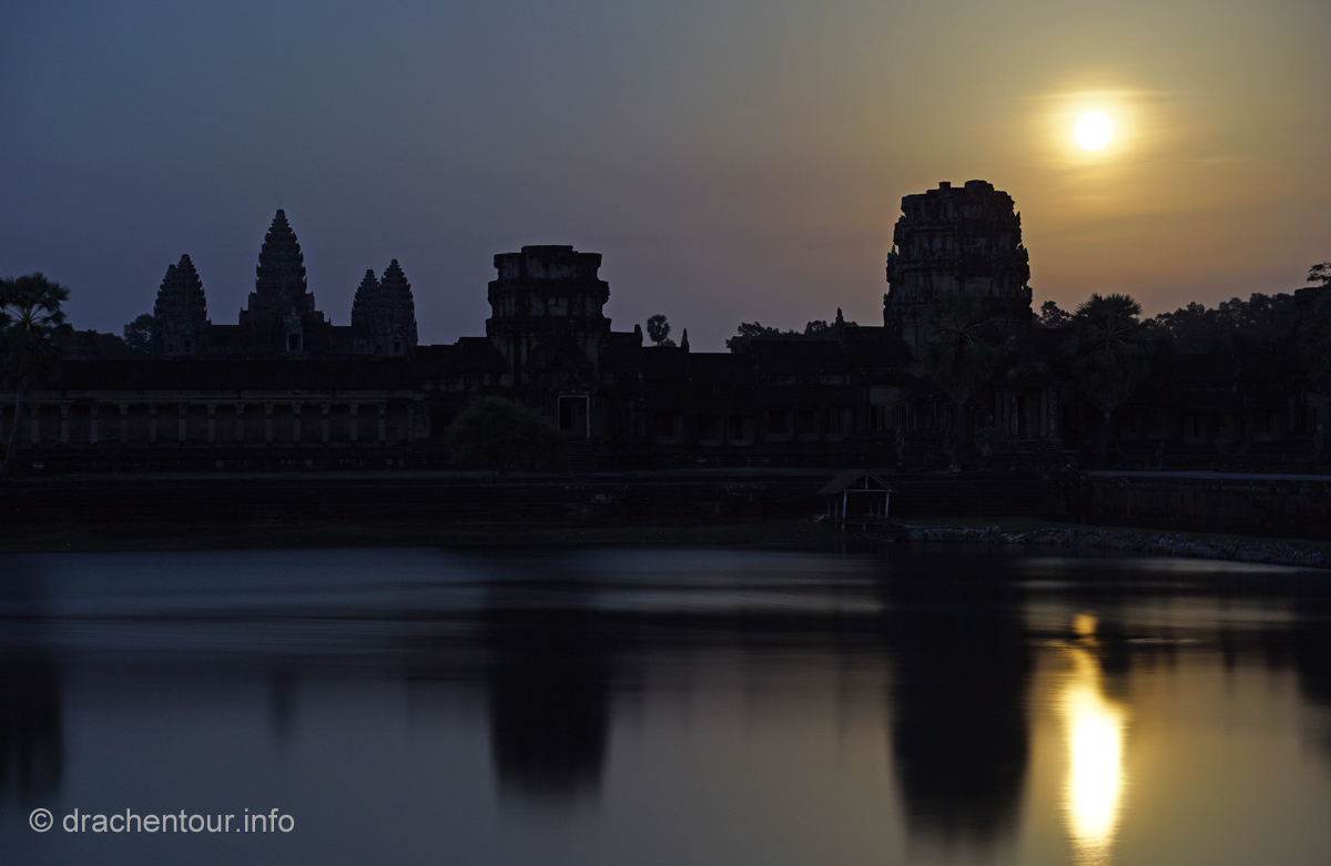 Das heißt, einen Stopp legten wir nochmals an den Toren von Angkor Wat ein, denn wir wollten die unbeschreiblich schöne Kulisse noch im Licht des Vollmonds sehen - es war umwerfend und Marek hat diesen Vollmond-Magie hervorragend in einem Foto einfangen können.