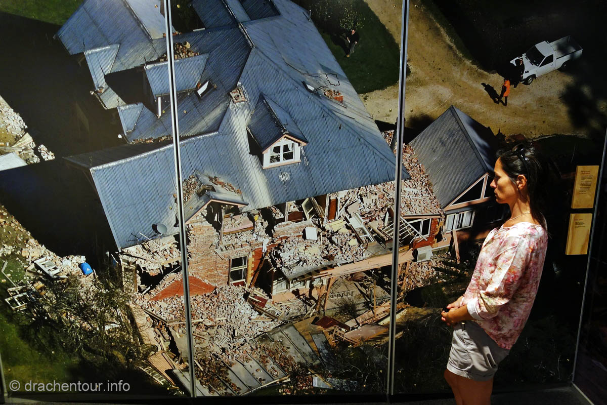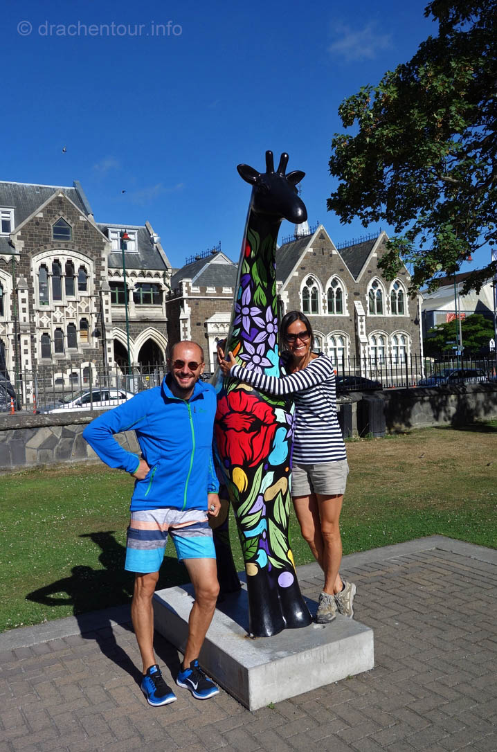 Angekommen sind wir zuerst in Christchurch, die als "englischste" Stadt Neuseelands gilt, was sich auch in der Architektur nachvollziehen lässt. D.h., was von den einst prachtvollen Gebäuden und denkmalgeschützten historischen Bauten noch übrig geblieben ist, denn diese Kleinstadt wurde gleich zweimal in kurzen Abständen von schweren Erdbeben heimgesucht. Dass zweite hatte schwerwiegende Folgen für die Stadt und für ihre Bewohner, denn etliche Gebäude stürzten ein, wobei das Stadtzentrum am meisten betroffen war. Noch heute - vier Jahre nach der gewaltigen Zerstörung - ist das Ausmaß der Folgen noch überall zu erkennen: leerstehende Häuser mit schiefen Wänden, gestützte Bauwerke und riesige Baustellen, wohin wir auch schauten. Irgendwie war der Anblick manchmal etwas gruselig und wir konnten nicht ganz nachvollziehen, warum der Wideraufbau sich so in die Länge zieht. Nach genauerem Hinterfragen erfuhren wir dann, dass fast 15% der Einwohner die Stadt aus Angst vor einem erneuten Beben verließen (ihre Häuser stehen leer), und dass einige Versicherungen nur zögerlich oder überhaupt nicht bezahlen. Dennoch ist die Atmosphäre und die Freundlichkeit der Menschen phänomenal: die Einwohner versuchen das Beste aus der Situation zu machen, so entstand zum Beispiel in der ehemaligen Shoppingstraße eine neue, das RESTART ! Alle Geschäfte und Cafes sind in Schiffscontainer untergebracht und sehr kreativ und individuell gestaltet, das ist echt eine gelungene Sache.