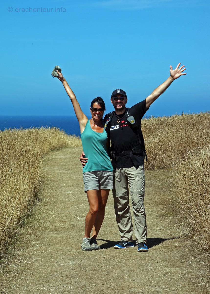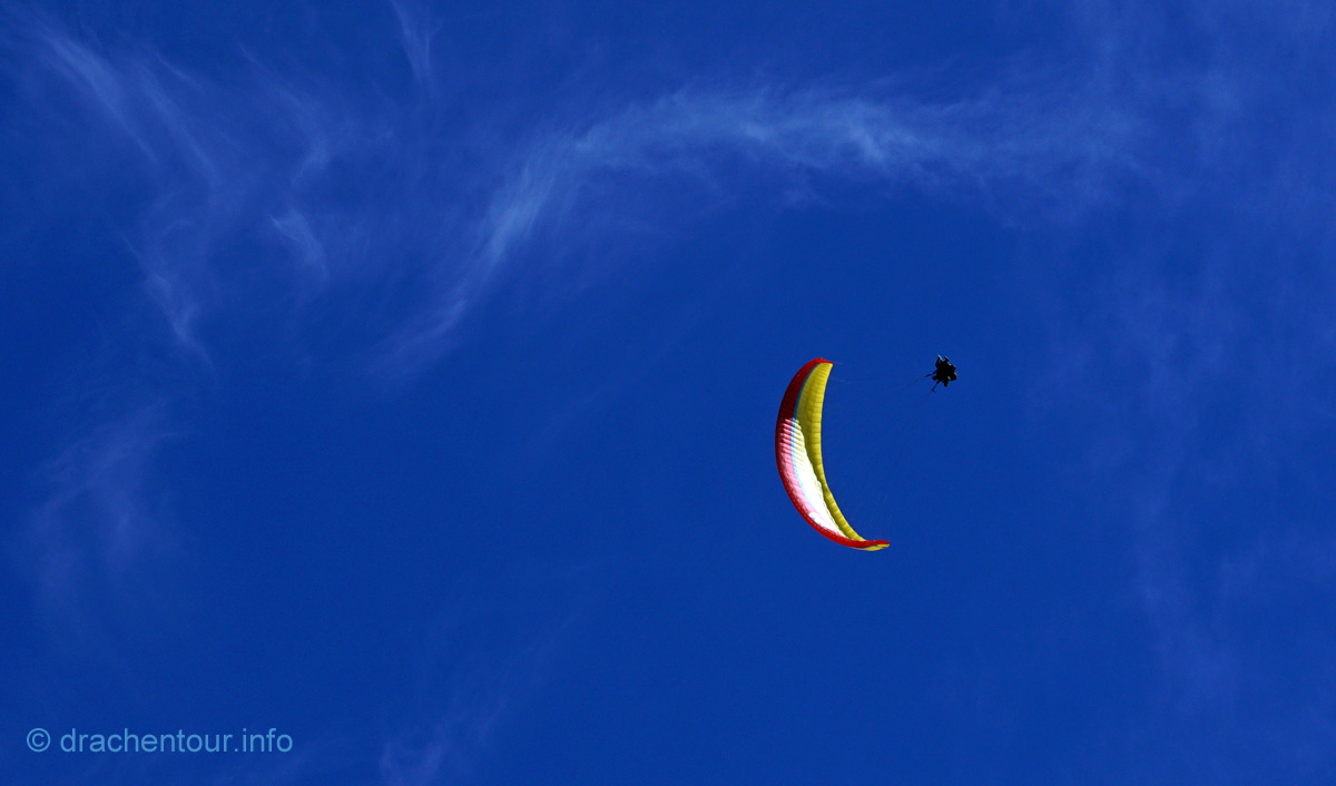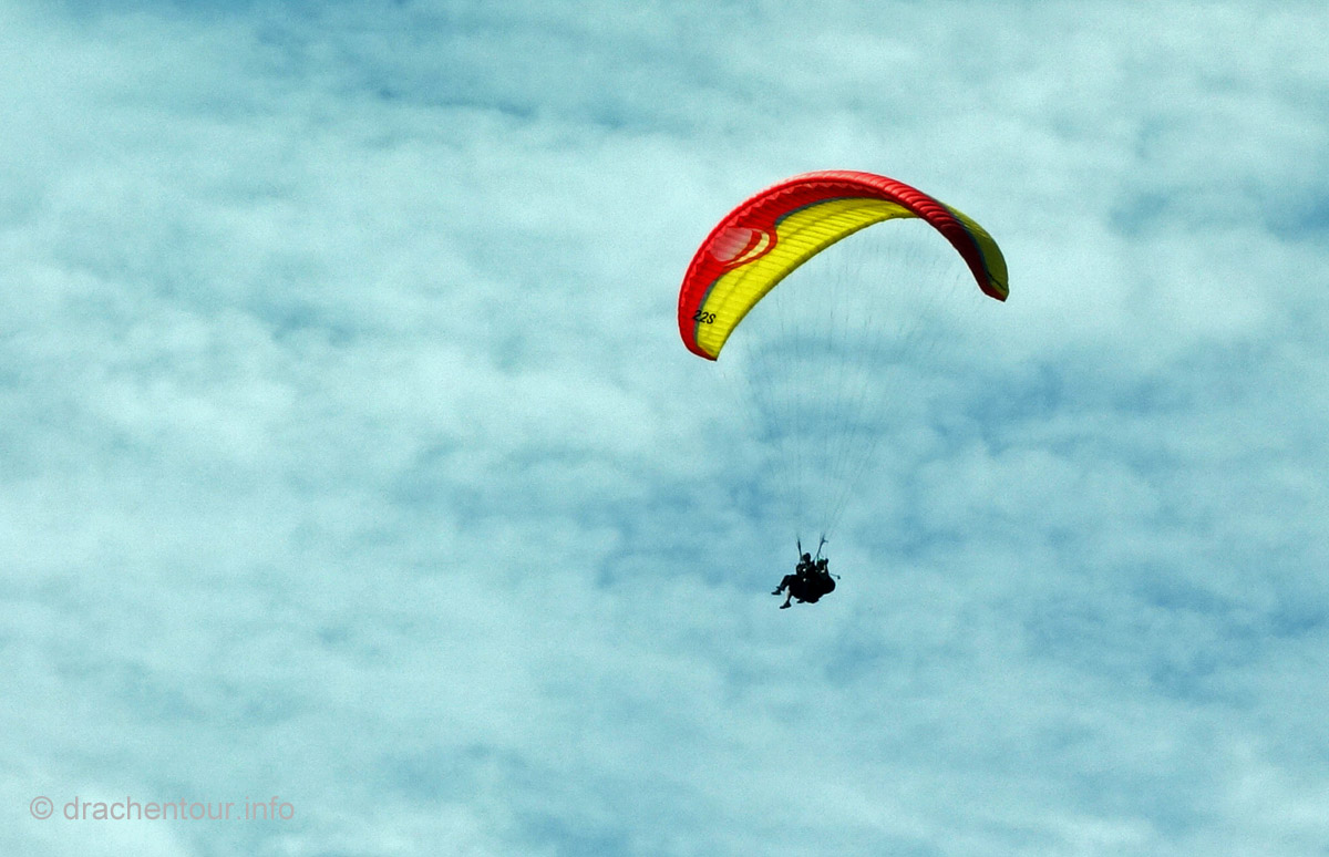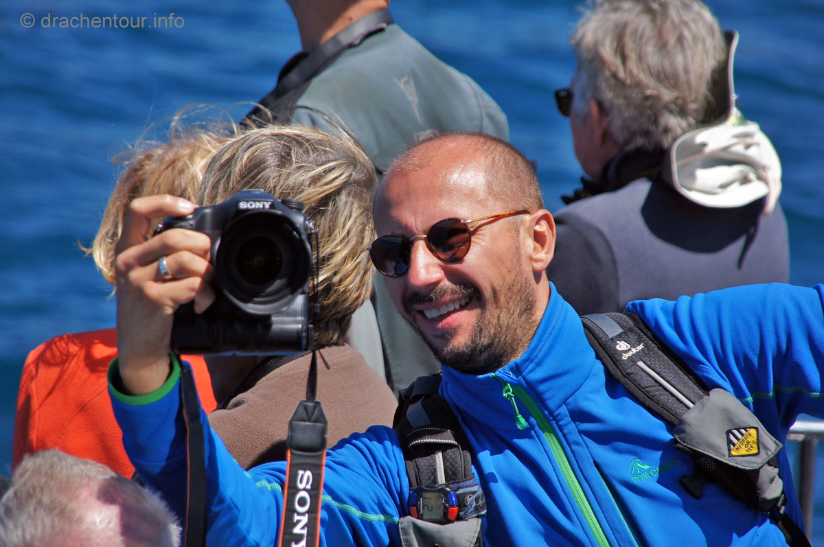 Ich weiß nicht, wer von uns Dreien das mulmigste Gefühl in der Magengegend hatte, aber ich war ganz schön aufgeregt. Selina zeigte sich eher cool und freute sich auf ihren Sprung. Gemütlich stand sie noch oben und rückte ihre Brille zurecht, als Thomas sie aufforderte ein paar Schritte nach vorne zu gehen und schwupp die wupp war sie plötzlich in der Luft und schraubte sich richtig hoch hinaus. Der Flug bei diesem traumhaften genialen Wetter und der phänomenalen Aussicht wird hoffentlich immer als ein ganz besonderes Erlebnis im Herzen von Selina sein, denn dann hätten wir beide die Absicht, die wir mit unserem Geschenk verbanden, erreicht. Ich war zumindest sehr erleichtert und froh, als sie wieder festen Boden unter den Füßen hatte und ich sie unversehrt umarmen konnte, zumal ihr Guide am Ende des Fluges waghalsige Achter mit ihr flog - das sah für mich als Leihe sehr gewagt und gefährlich aus.