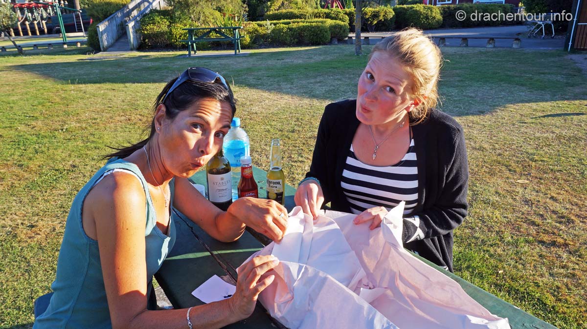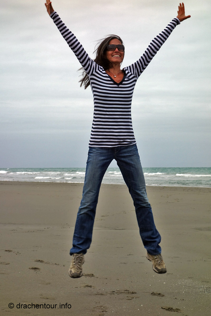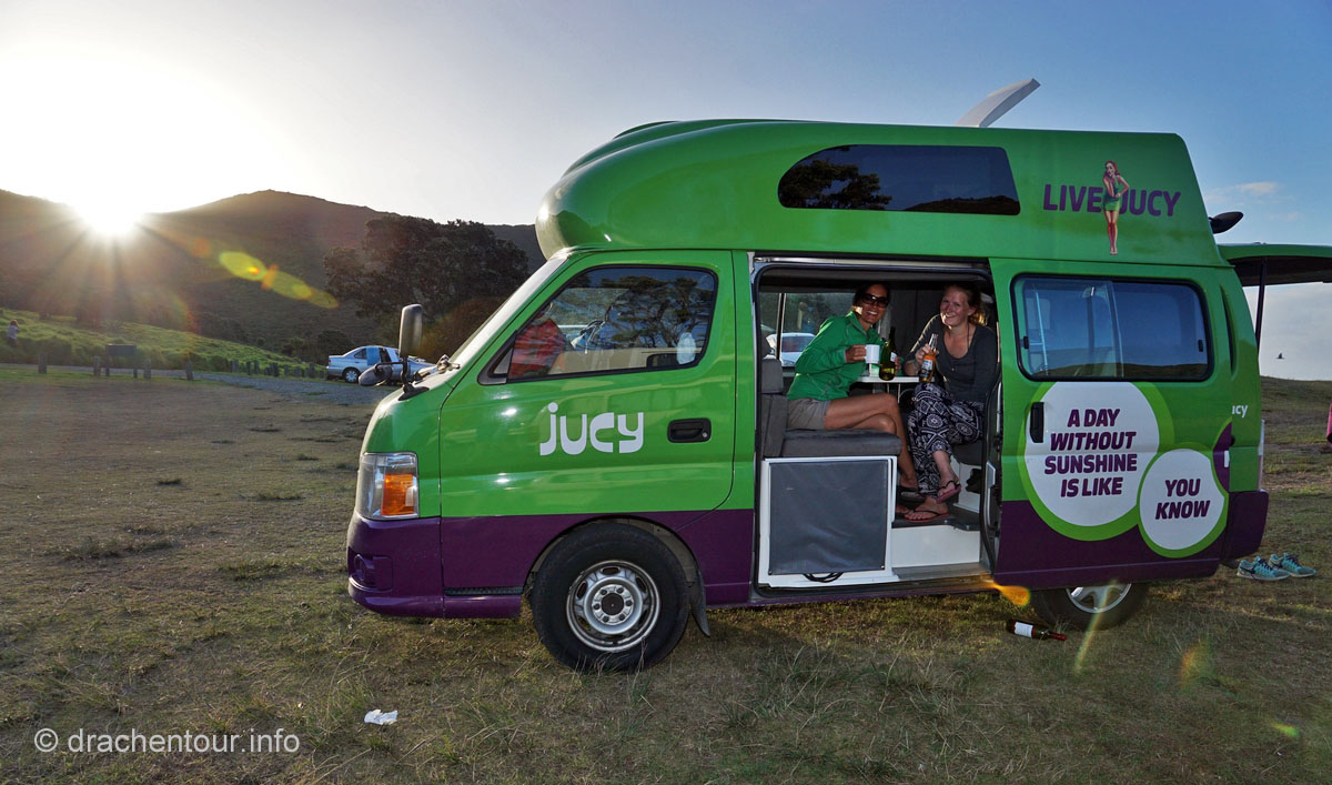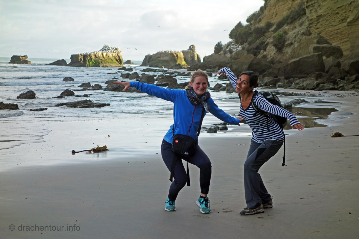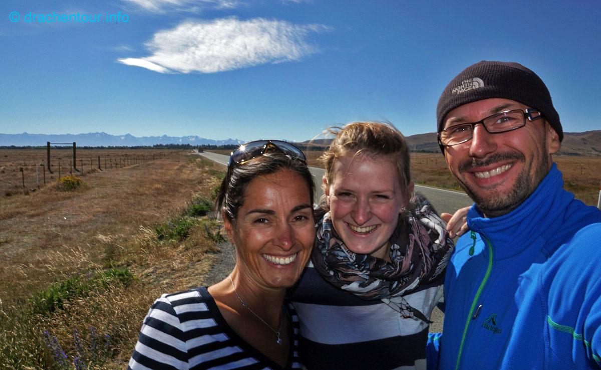 So vergingen die Tage sehr schnell und schwupp die wupp wurden aus zwei Drachs drei Drachen: unsere Nichte Selina bereicherte ab jetzt unsere Neuseelandreise. Und halt nein eigentlich sind wir nun zu viert ! Drei Frauen (der arme - oder glückliche - Marek :-) ), denn auch Jucy Lucy ist jetzt mit am Start. Jucy Lucy ist unser Wohnmobil mit dem wir drei nun die beiden Inseln mit ihren Schätzen entdecken wollen. Nach einer knappen Vorbereitung, bei der wir die Hauptziele miteinander absprachen, konnte unser Road Trip nun beginnen. Die erste Nacht verbrachten wir noch in Christchurch, mit Morgentoilette beim Maces und Outdoor Frühstück an unserem geliebten Sumner Beach, den wir Selina noch gerne zeigen wollten. Dann ging es los und wir tauchten ab in die atemberaubenden Landschaften Neuseelands – jipiii !