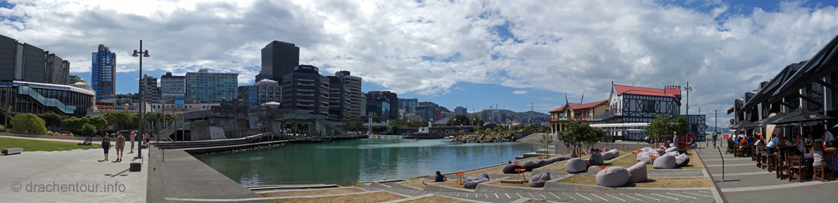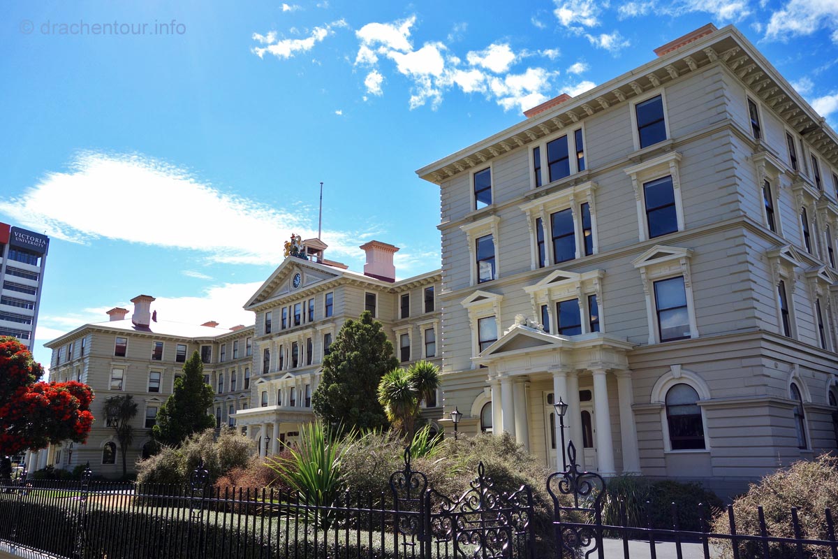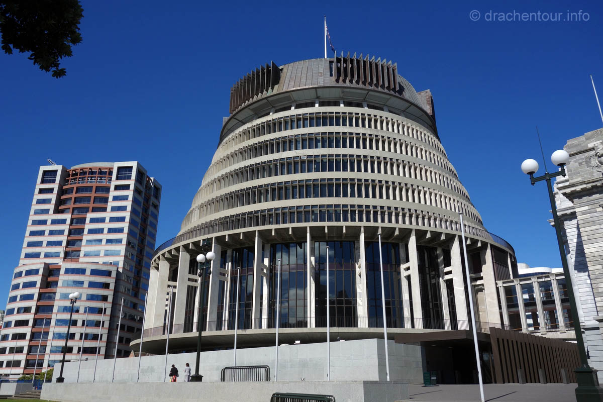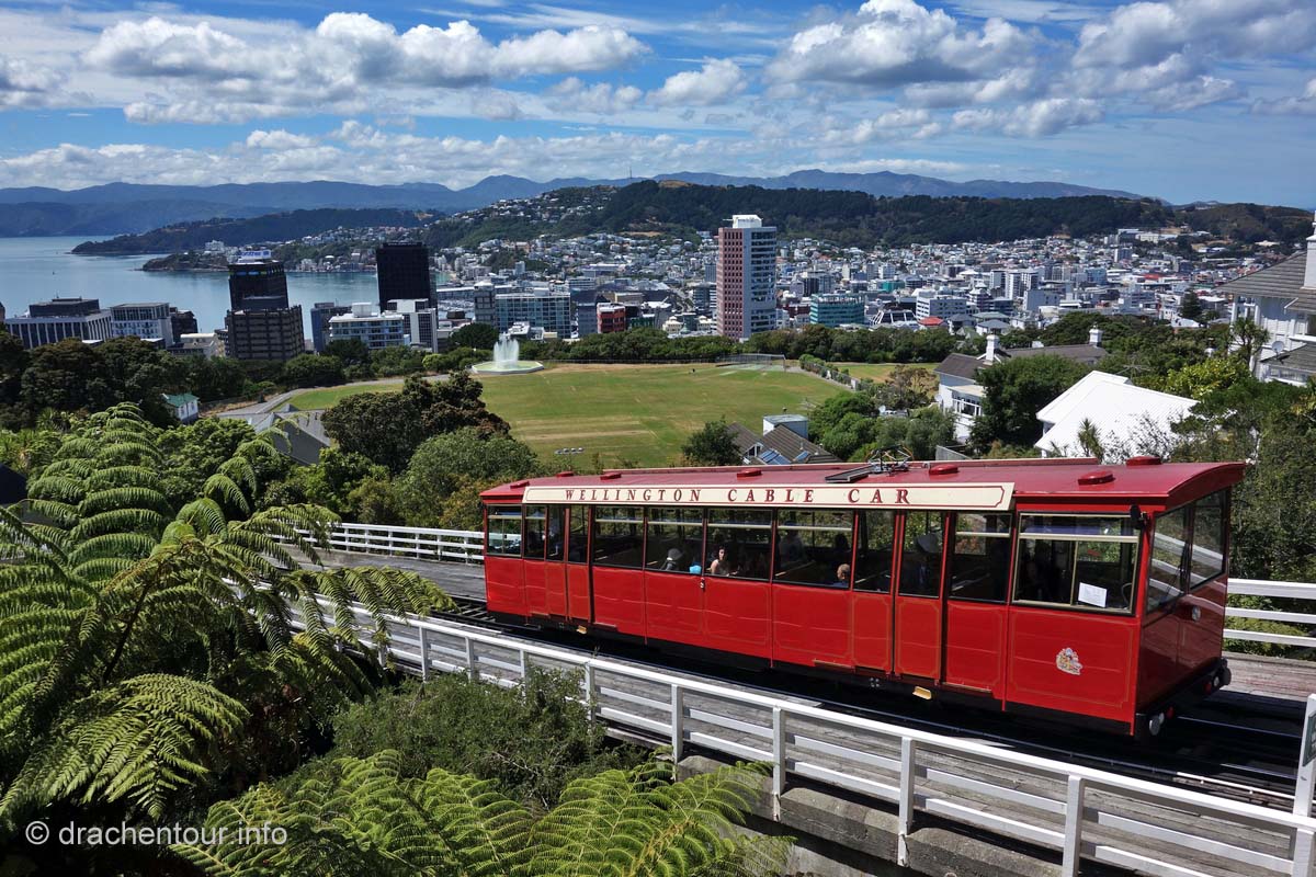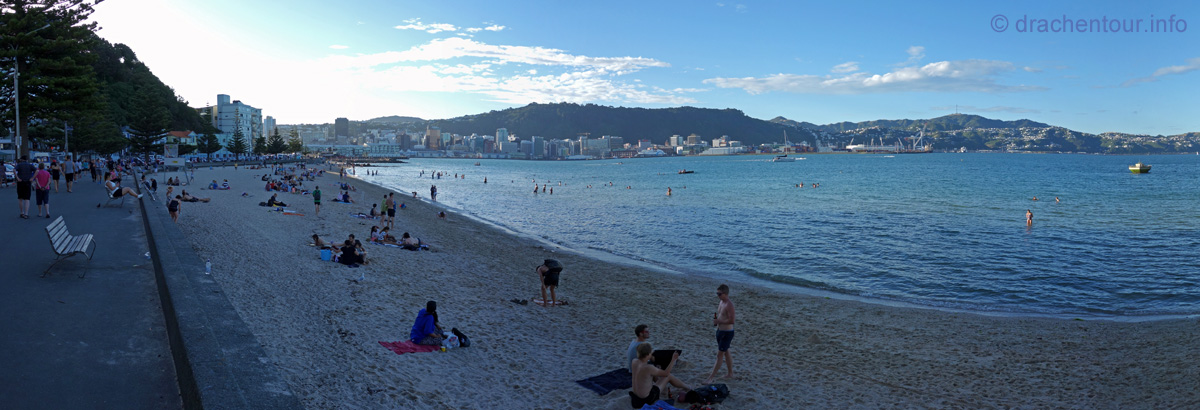Nach so viel Natur auf der Südhalbinsel waren wir heute geradezu verrückt auf das Stadtleben und Shopping. So machten wir uns gleich nach dem Frühstück in die City auf um sie kennen zu lernen und zu erobern. Erster Programmpunkt war das Abklappern der Sehenswürdigkeiten, d.h. wir spazierten zum Regierungsviertel und besichtigten die architektonisch interessanten Gebäude ( als kleine Anregung zum Studium, gell Seli :-) ). Besonders hervorzuheben sind das ältere neuseeländische Parlamentsgebäude und das Regierungsgebäude, das auch als Bienenstock bezeichnet wird, in dem der Prime Minister und die Minister des Kabinetts ihre Büros haben. Das „ Old Government Building “ war unsere zweite Sehenswürdigkeit, das Gebäude sieht aus, als wenn es aus Stein erbaut worden wäre, erst bei einem Klopfen an der Fassade konnten wir bestätigen, dass das gesamte Gebäude aus Holz erschaffen wurde. Es ist das größte Holzgebäude der Südhalbkugel, faszinierend ! Nummer drei und vier waren die Kirchen, die Saint Paul Church und die Old Saint Paul Church. Als Abschluss der Stadtbesichtigung liefen wir durch die Lambton Quay, die belebteste Straße der Stadt bis zur historischen Wellington Cable Car. Mit diesem Relikt aus der Vergangenheit mussten wir natürlich fahren, so lösten wir uns rasch ein Ticket und ab ging´s den kleinen Hügel Mount Victoria hoch, von wo wir eine schöne Aussicht auf die Stadt hatten. Wieder zurück zur City liefen wir durch den super angelegten Botanischen Garten und damit war das Kulturprogramm fast beendet und wir stürzten uns zunächst, jeder für sich, ins Shopping-Vergnügen mit einem integrierten Bummel durch die gemütlichen kleinen Straßen, wie zum Beispiel der Kuba Street. Gegen später trafen wir uns an der Oriental Bay am Hafen wieder um gemeinsam das Te Papa Museum, das Nationalmuseum von Neuseeland, zu besuchen. Dort bekamen wir einen guten Überblick über die Tierwelt Neuseelands und auch ihre "gefährliche" geographische Lage an der Grenze von zwei tektonischen Platte, es gilt als einer der weltweit besten interaktiven Museen, dem stimmen wir doch gerne zu. Anschließend erholten wir uns wieder in einer der netten Kneipen an der angesagten Oriental Bay, bevor wir an der Uferpromenade weiter entlang spazierten. Die Stadt raubte uns die Energie und schließlich waren wir ja auch den ganzen Tag auf den Beinen ( es war mittlerweile 9 Uhr abends ), so fuhren wir erledigt mit dem Bus zu unserem Campingplatz, kochten noch schnell etwas und ab ging´s ins " Juicy-Bettle ".