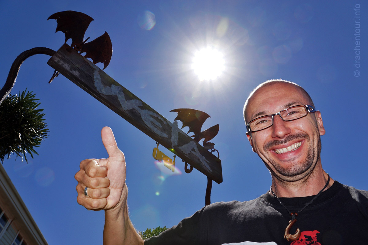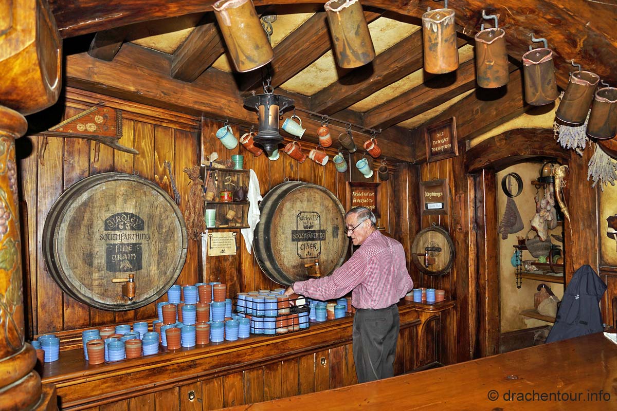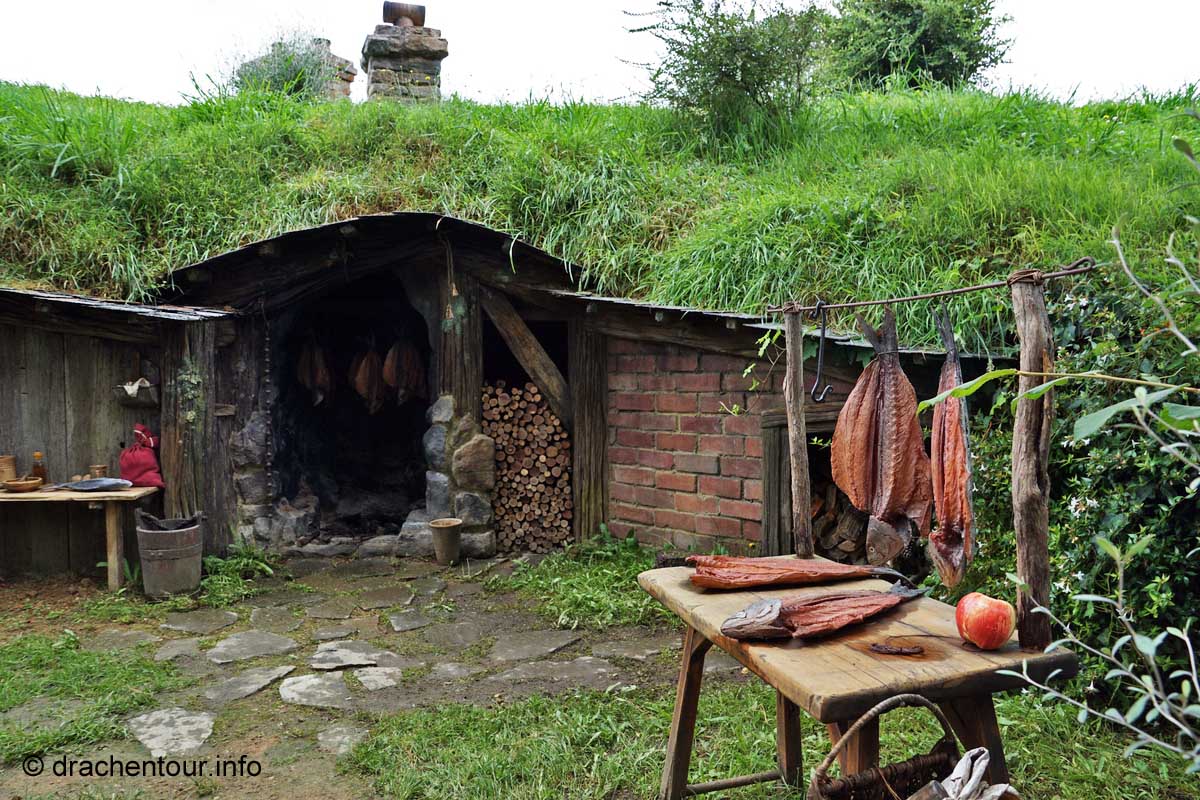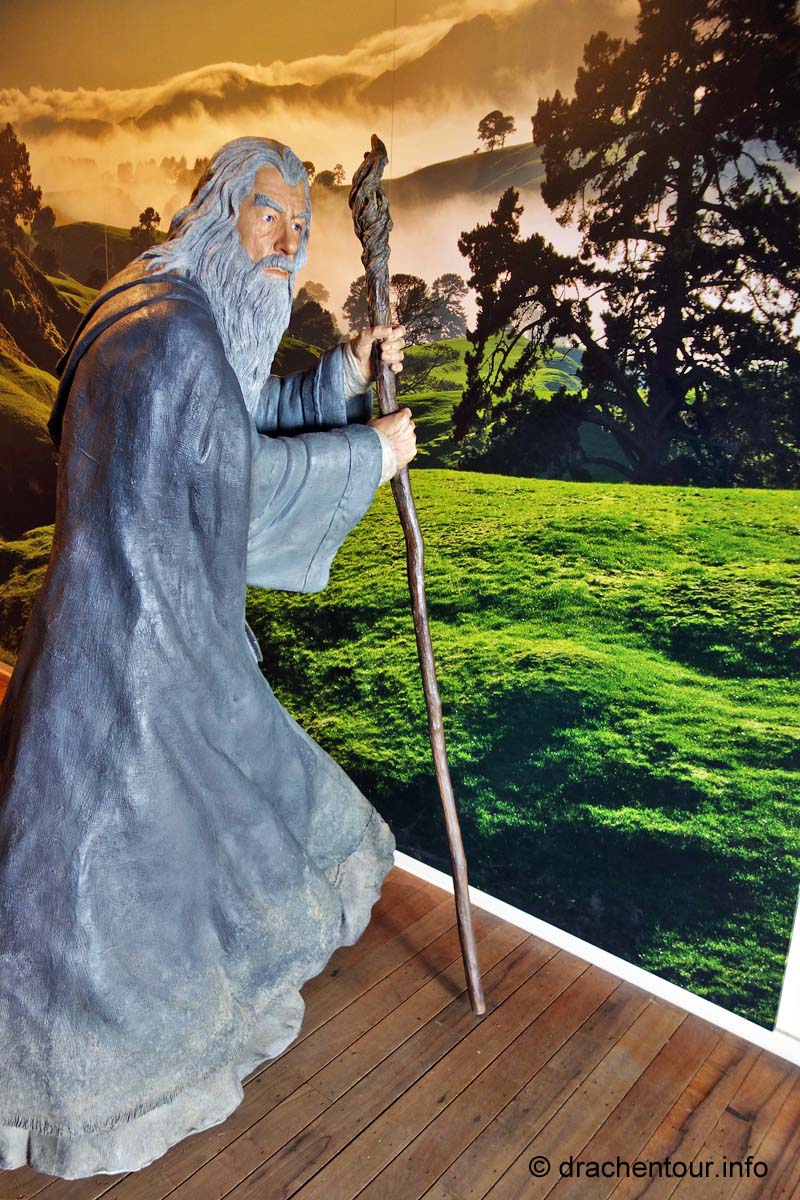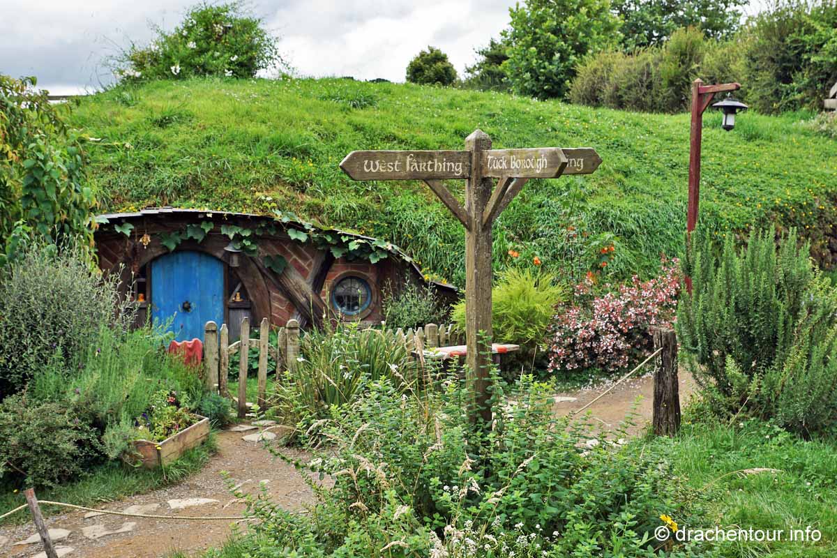 Diese Tatsache verhalf dem Örtchen zu einem hohen Bekanntheitsgrad und aus Matamata wurde " Hobbiton " und genau deswegen haben auch wir uns hierher aufgemacht um diese süßen und goldigen Erdhäuser, die sanft geschwungenen Hügel, den See, die Mühle und die Kneipe Green Dragon, sowie weitere Highlights aus den Filmen live zu sehen ! Klar, dass Marek komplett aus dem Häuschen war und sich sogar mal kurzzeitig verfahren hatte, aber selbst Seli und ich, die zur Spezies " Normale Hobbit Fans " gehören, freuten uns sehr auf die uns bevorstehende Tour. Wie immer hatten die Kiwis alles bestens organisiert und wir drei und noch ca. 40 weitere " Freaks " fuhren mit einem Bus zu den Filmsets. Mit jedem Kilometer, den wir dem Set näher kamen, veränderte sich die Landschaft sichtlich in Richtung Hobbit-Land - gigantisch - die Natur sieht hier wirklich so aus. Dann begann die eigentliche Führung, wir wurden von einer jungen Dame, die echt gute Nerven hatte, mitten durch das Hobbit-Land geführt. Wir kamen an vielen wunderbar bunt gestalteten Erdhäusern vorbei und mit viel Engagement und Liebe zum noch so winzigsten Detail wurde der ganze Ort dekoriert. Wir hatten das Gefühl, dass jeden Moment Frodo oder Bilbo Beutlin um die Ecke oder aus einer der Türen kommen könnte – toll ! Die Tour war absolut lohnend und wir drei waren hin und weg, wie realistisch die gesamten Kulissen in Stand gehalten werden, wir waren quasi für zwei Stunden zu Hobbits mutiert und fühlten uns wie in eine andere Welt gebeamt – spitzenmäßig !