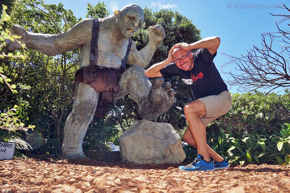 Heute ist Mareks großer Tag und er ist auch schon sichtlich aufgeregt in freudiger Erwartung, denn er wird einen Blick hinter die Kulissen der „ Weta Cave “ + Workshop werfen. Die Film-Firma besteht aus zahlreichen Hallen und ist auch die Heimat des weltbekannten Filmemachers Peter Jackson. Seli und ich beschlossen dagegen einen ruhigen "Frauenmorgen" in der Stadt zu verbringen. Gemeinsam fuhren wir mit unserer Juicy in das Zentrum und Marek ließ uns an der schönen Shoppingstraße aussteigen. Wir Mädels suchten uns erstmal ein gemütliches Café um uns für den bevorstehenden Stadtbummel zu stärken. So einige Läden haben wir durchgekämmt, in Regalen gestöbert und Klamotten anprobiert und das ein oder andere schöne Stück wanderte in unsere Tasche. Gegen Mittag waren wir mit Marek verabredet, der uns freudestrahlend entgegenkam. Seine Stimme überschlug sich fast als er uns von seinen Erlebnissen erzählte. Die „ Weta Cave “ sind das Zentrum der neuseeländischen Filmindustrie, in Anlehnung an Hollywood wird es auch liebevoll als Wellywood bezeichnet. Diesen Spitznamen trägt die Stadt seit dem die Kostüme, Spezialeffekte, Bauten, Requisiten und weiteres Digitale Zaubereien der berühmten Filme, wie zum Beispiel Herr der Ringe und Hobbit hier hergestellt, bzw. kreiert wurden. An den Bildern kann man deutlich erkennen, wie viel Freude Marek bei dieser Besichtigung hatte und er sich einen innigen Wunsch erfüllte.