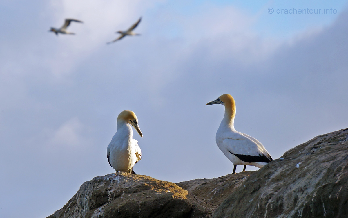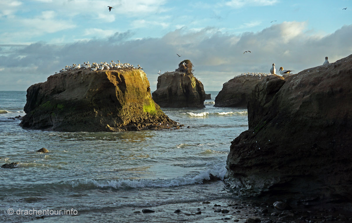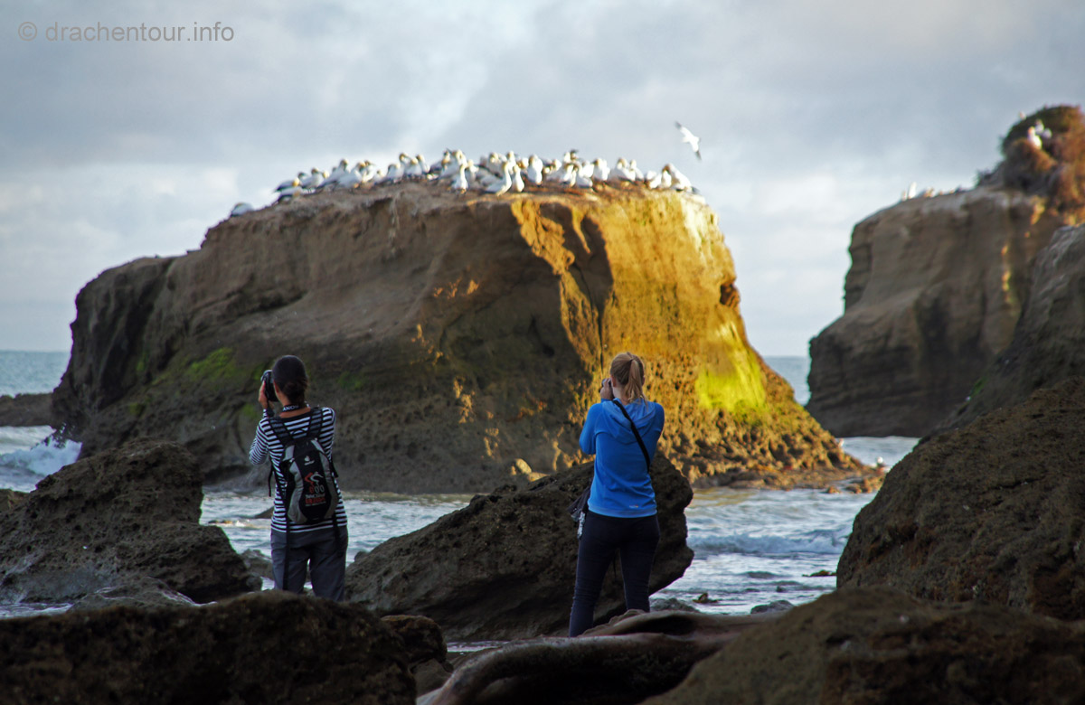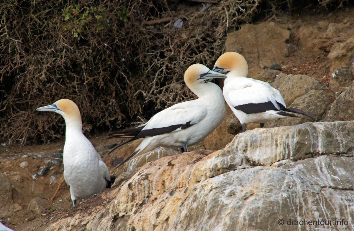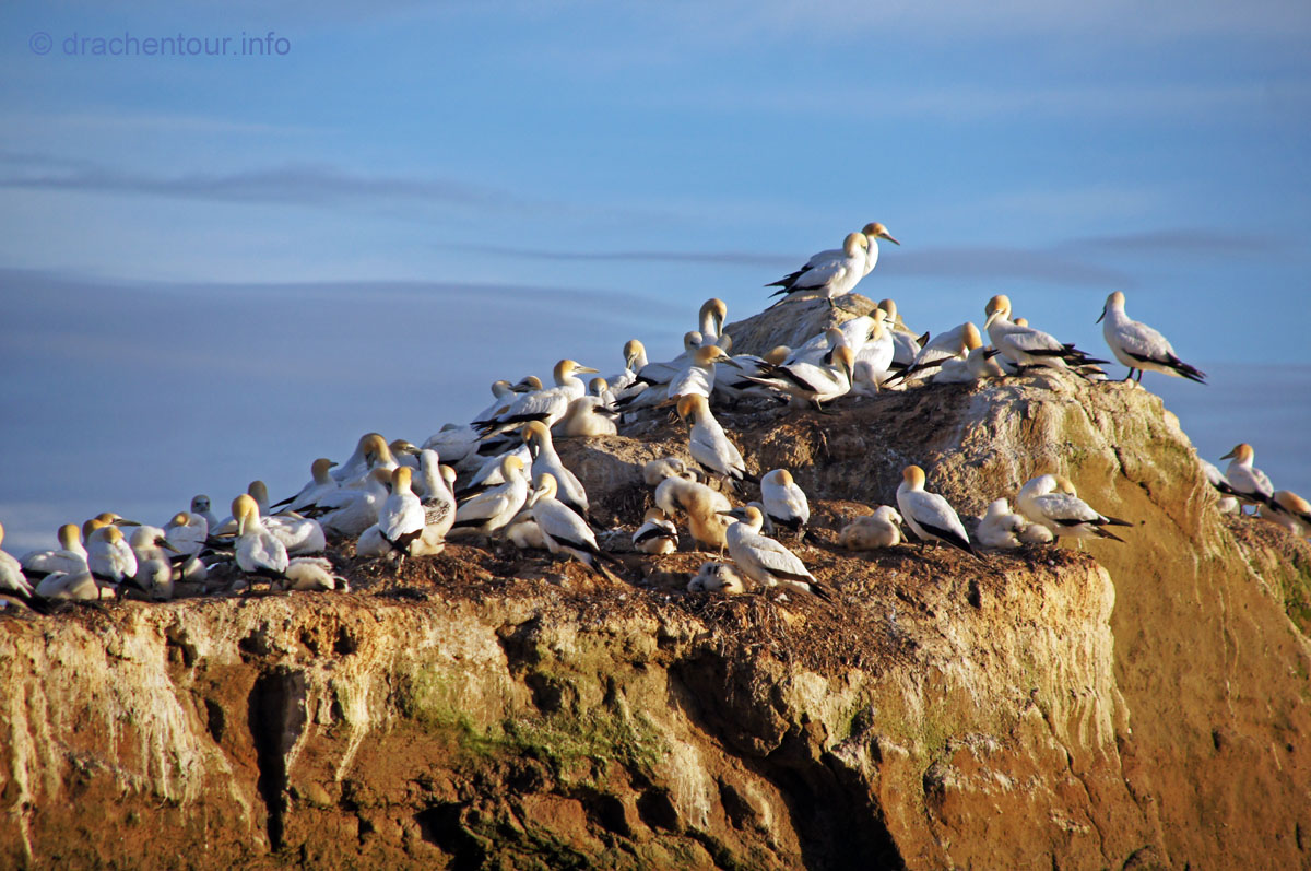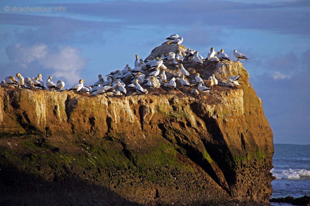 Das Cape Kidnappers bekam übrigens seinen lustigen Namen, weil aus dem Boot des Seefahrers Cook ein Küchenjunge von den Maoris "befreit" wurde, weil er glaubte, dass der Junge ein Gefangener sei. Der Maori lag mit seiner Annahme falsch und für Cook sah es wie eine Entführung aus, so holte er sich den Jungen wieder zurück und das Cape hatte seinen Namen.