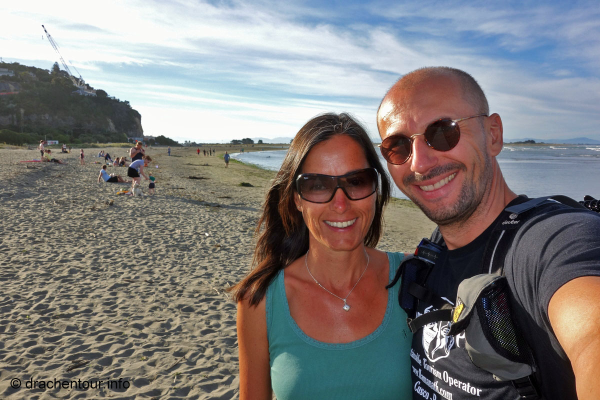 Natürlich wollten wir auch die Strände erkunden, so fuhren wir zu den stadtnahsten und bekanntesten, zum New Brighton Beach und zu Sumner Beach. Der letztere war recht überschaubar, sehr gemütlich und liegt angeschmiegt in einer schönen Bucht. Dass Wetter war prima und es gab tolle Wellen, so dass wir einigen Surfen beim Tanz ( oder Kampf :-) ) auf dem Wasser zuschauen konnten. Auch Marek wurde aktiv und nahm an einem kleinen sportlichen Fitnessvergleich teil, dabei gewann er gleich zwei Surfshirts, die wir sicherlich noch gut gebrauchen können - gut gemacht !!! Des Weiteren erfreuten wir uns an einem schönen Sonnenuntergang und gönnten uns eine Weinprobe der neuseeländischen Tropfen, die erstaunlicherweise recht lecker waren.