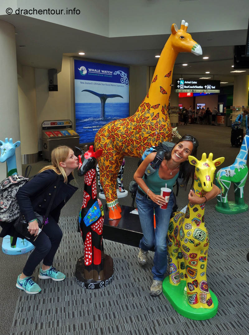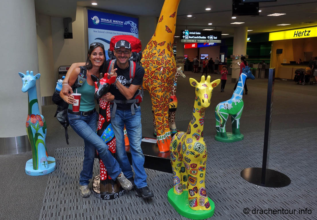 Letzter Tag in Neuseeland ! Es ist kaum zu glauben, dass diese fünf Wochen für Marek und mich und die vier Wochen für Seli nun wirklich vorüber sein sollen. Wenn wir zurückblicken kommt uns die Zeit sehr lange vor, vermutlich weil wir so viel unternommen, erlebt und gesehen haben. Wie es sich für einen Abschied gehört, weint ein Auge und das andere lacht: schade natürlich, dass diese wundervolle und ereignisreiche Zeit nun ein Ende hat und schön, weil Seli wieder nach Deutschland in die Arme ihrer Lieben fliegen wird und wir beide uns auf unser nächstes Ziel bereits freuen. Dennoch lag heute Morgen etwas Wehmut in der Luft. Aber alles hilft nichts, zum letzten Mal einen leckeren Cappuccino, dann packen und duschen und schon waren wir unterwegs zum Flughafen. Jetzt ging alles ganz schnell, eigentlich sollte Seli 30 Minuten vor uns fliegen, aber ihr Flieger hatte Verspätung, so verabschiedeten wir uns mit Tränen in den Augen voneinander und Marek und ich gingen zu unserem Gate und wenig später folgte auch Seli.