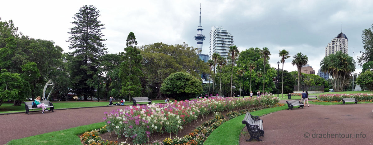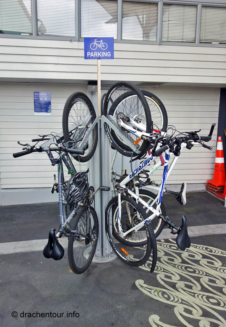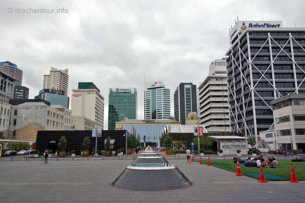 Auckland ist unwahrscheinlich facettenreich und hat Vieles zu bieten, wir waren allerdings doch etwas geschafft von dem strammen Programm der letzten Wochen und entschieden uns nur die Sehenswürdigkeiten im Stadtzentrum zu besichtigen. So unternahmen wir einen vorgeschlagen kleinen Spaziergang des Lonely Planets durch die City. Auf dieser Rundtour klapperten wir die wichtigsten Sehenswürdigkeiten ab. Aber ehrlich geschrieben, das war eher so ein Pflichtprogramm, schon toll, allerdings waren wir echt platt. Besonders goldig fanden wir den Campus der Uni und die erholsamen und kraftspendenden Parks. Und wir waren von der Skyline Aucklands mit dem höchsten Gebäude der Südhalbkugel, dem City-Tower mit 330 m, echt beeindruckt. Lustig fanden wir die Fahrradpark Anlagen, das wäre doch mal was für unsere Heimat Freiburg :-) ! Als Abschluss besuchten wir dann noch ein Museum, indem wir uns sogar künstlerisch betätigten und uns verewigten, indem wir unseren Anfangsbuchstaben unserer Namen mit weißen Legos bauten und sie in ein großes Gesamtkunstwerk mit einbauten. So neigte sich auch Tag zwei relativ schnell dem Ende zu und wir fielen mal wieder müde, denn Städte rauben einem die Kraft, in unsere Betten.