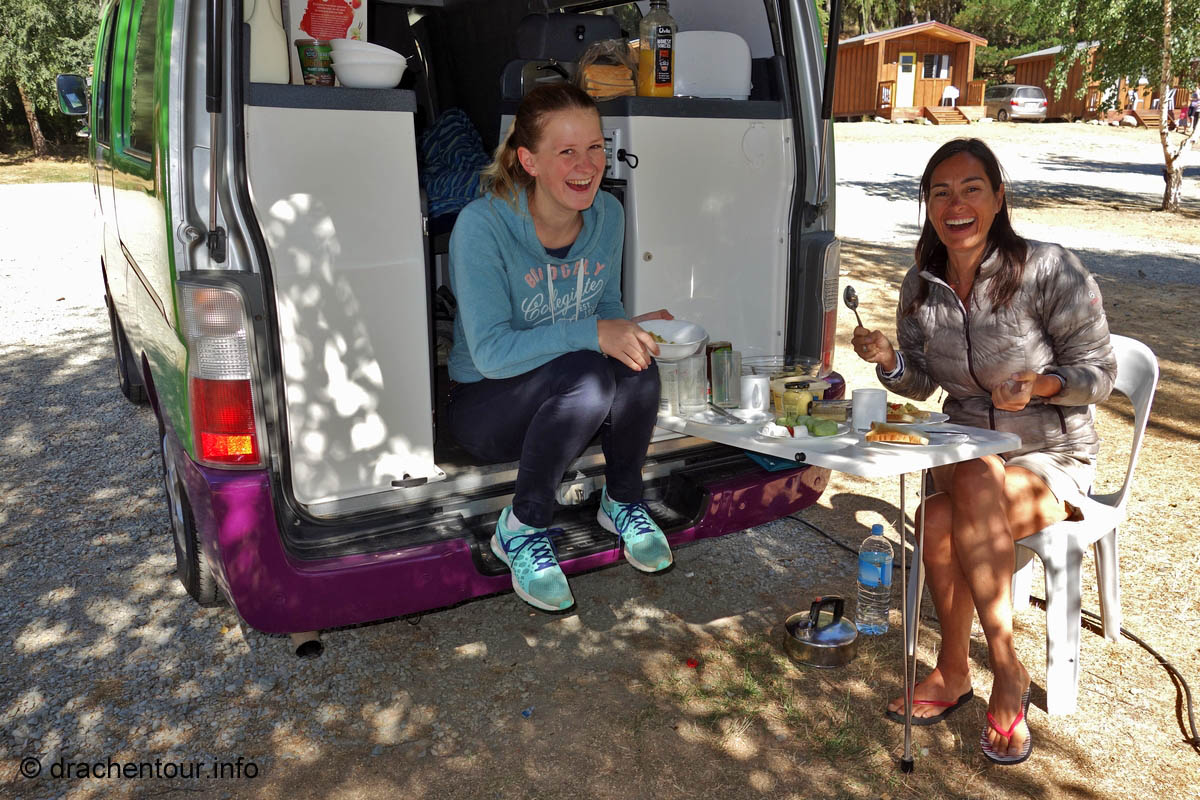 Abends kochten wir ein letztes Mal auf unserem schönen Campingplatz und bereiteten uns auf unsere letzte Nacht in unserer geliebten Juicy vor. Kaum zu glauben, aber das ist die 28 Nacht in unserem lila-grün-farbenen Roadrunner.