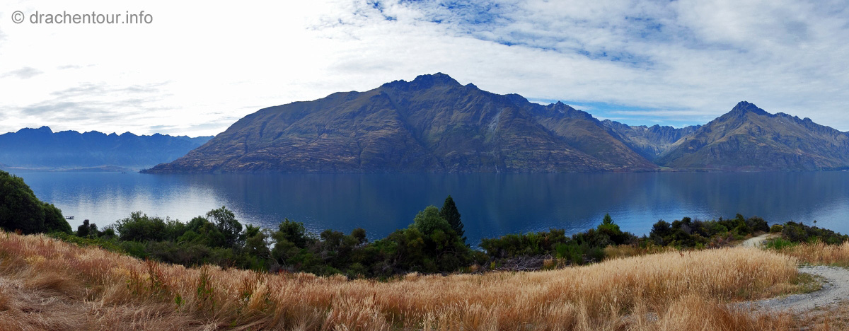 Zumindest cruiste ich, mit dem wundervollen Bergpanorama in meinem Rückspiegel, völlig gemütlich in Richtung Queenstown und auch meine Mitreisenden konnten sich bei jedem gefahrenen Kilometer sichtlich entspannen. Queenstown ließen wir heute links liegen und fuhren gleich weiter zu unserem Campingplatz am Lake Wakatipu, der nur spärlich, mit einem Plumpsklo, ausgestattet war, aber für eine Nacht vollkommen o.k. !