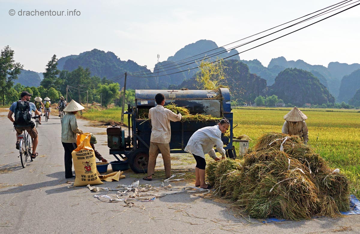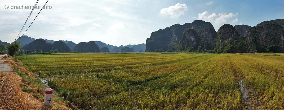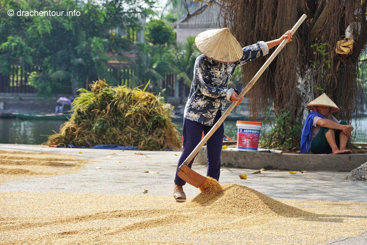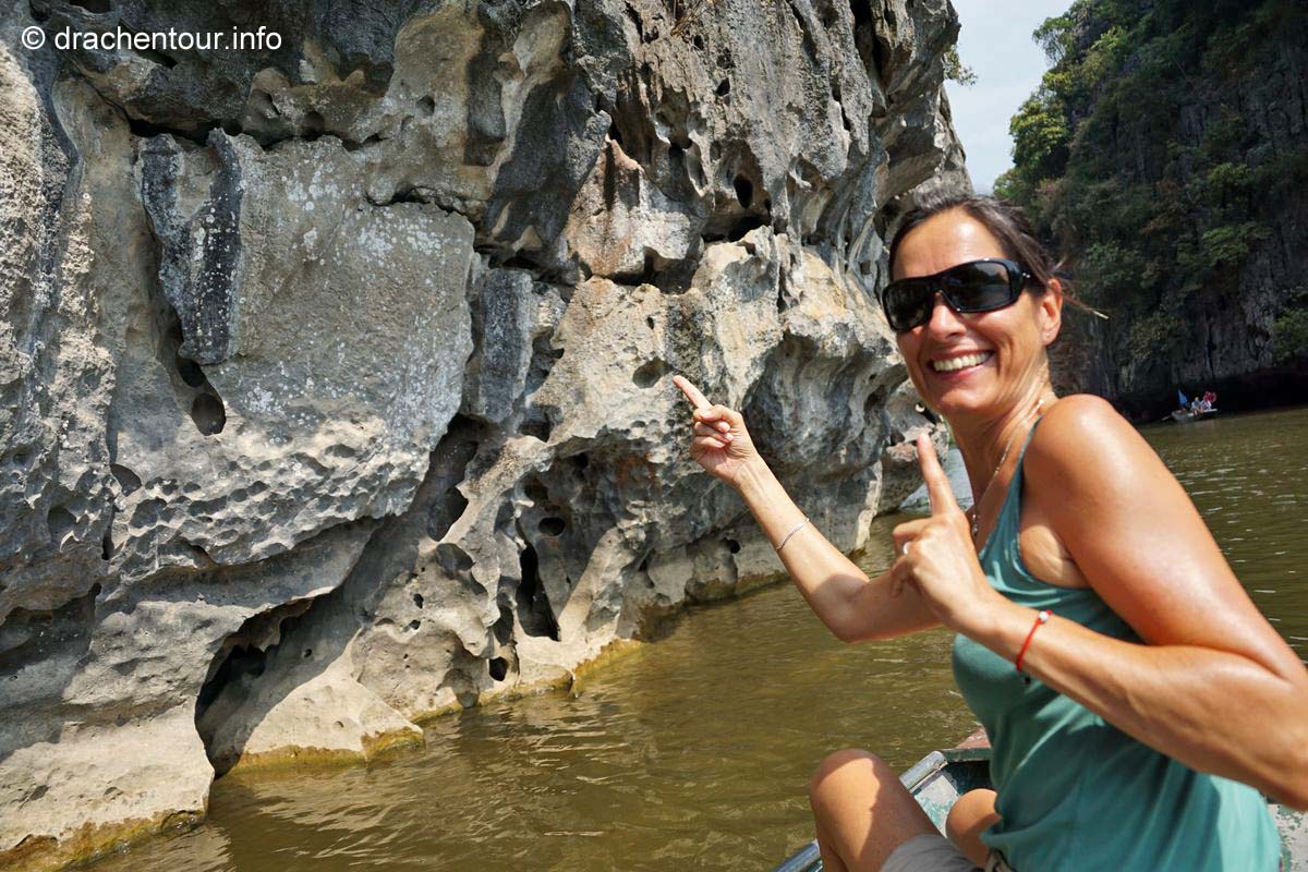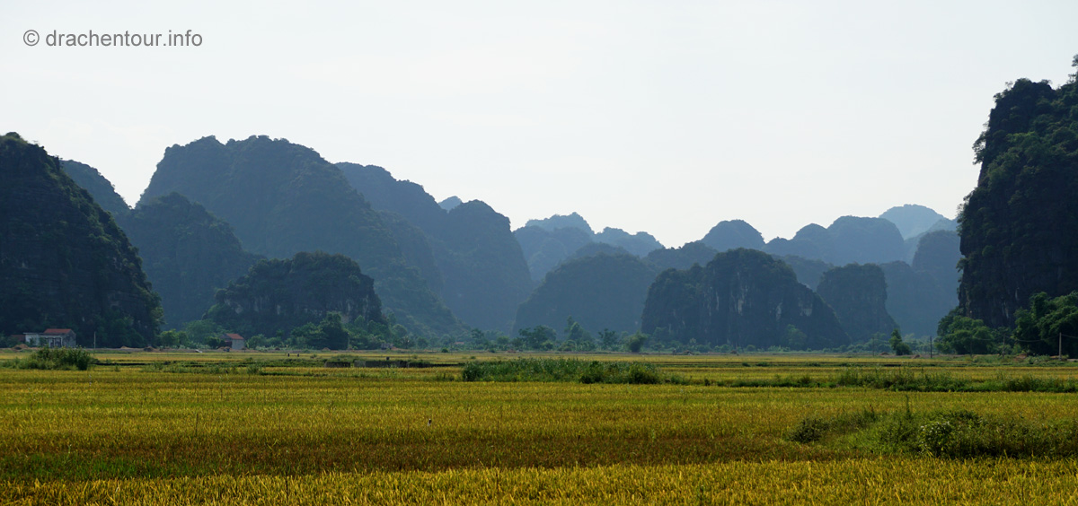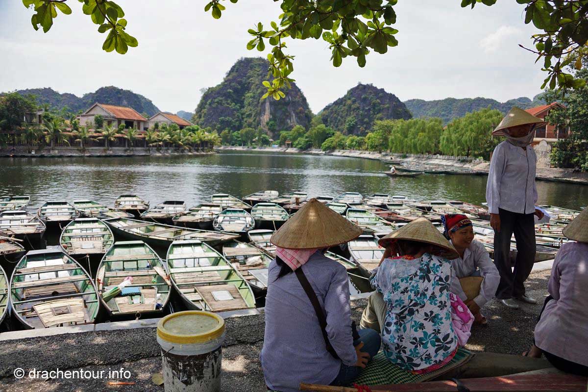 Für heute hatten wir einen organisierten Tagesausflug geplant, das ist auch mal wieder schön, weil wir uns um nichts kümmern müssen. Auf unserer Reise haben wir alles was wir selbst unternehmen konnten auch auf eigene Faust erkundet und entdeckt, diese Art zu reisen macht uns mehr Spaß und hat auch einen höheren Reiz für uns und wir sind freier in der Planung. Allerdings ist das auch anstrengender und so freuten wir uns auch mal darauf alles serviert zu bekommen, genauso wie bei der Mini-Kreuzfahrt in der Ha Long Bay. Mit einem Minibus wurden wir bei unserem Hotel abgeholt und fuhren zunächst zwei Stunden auf sehr schlechten Straßen nach Hoa Lu, das ist eine alte Hauptstadt aus dem 10. Jahrhundert. Dort besuchten wir die alten Tempelanlagen Dinh King und Le King. Na ja, das war ganz nett, hat uns aber nicht in einen Jubeltaumel versetzt.