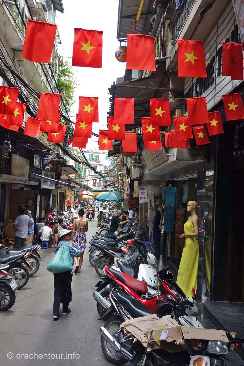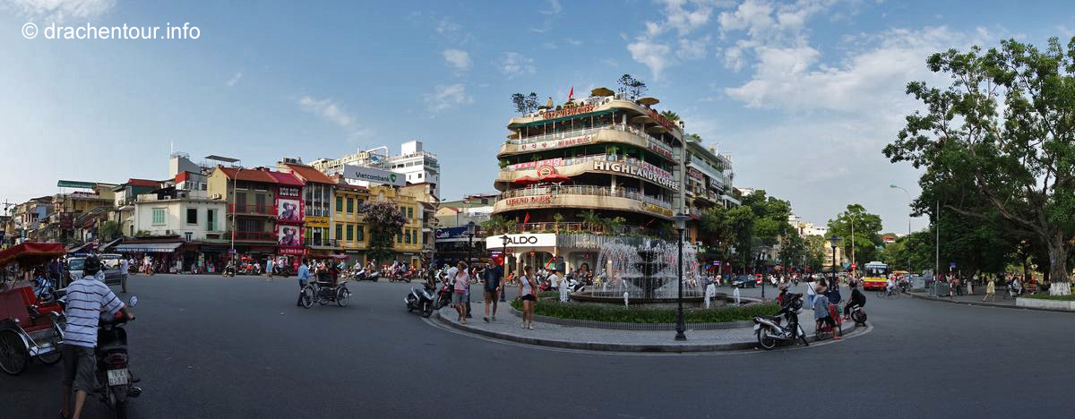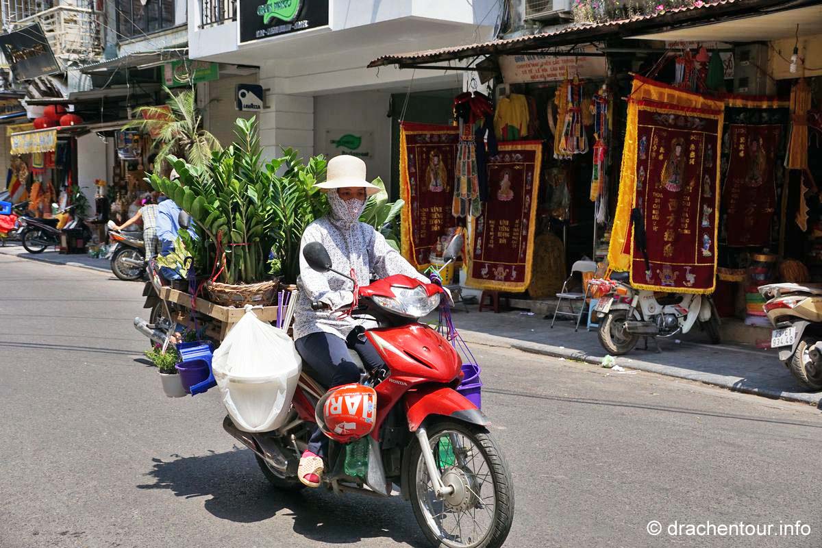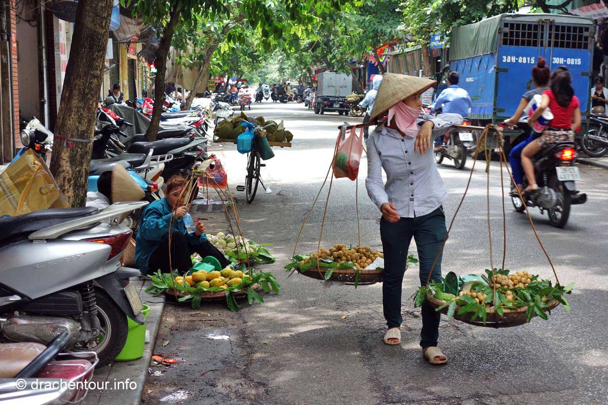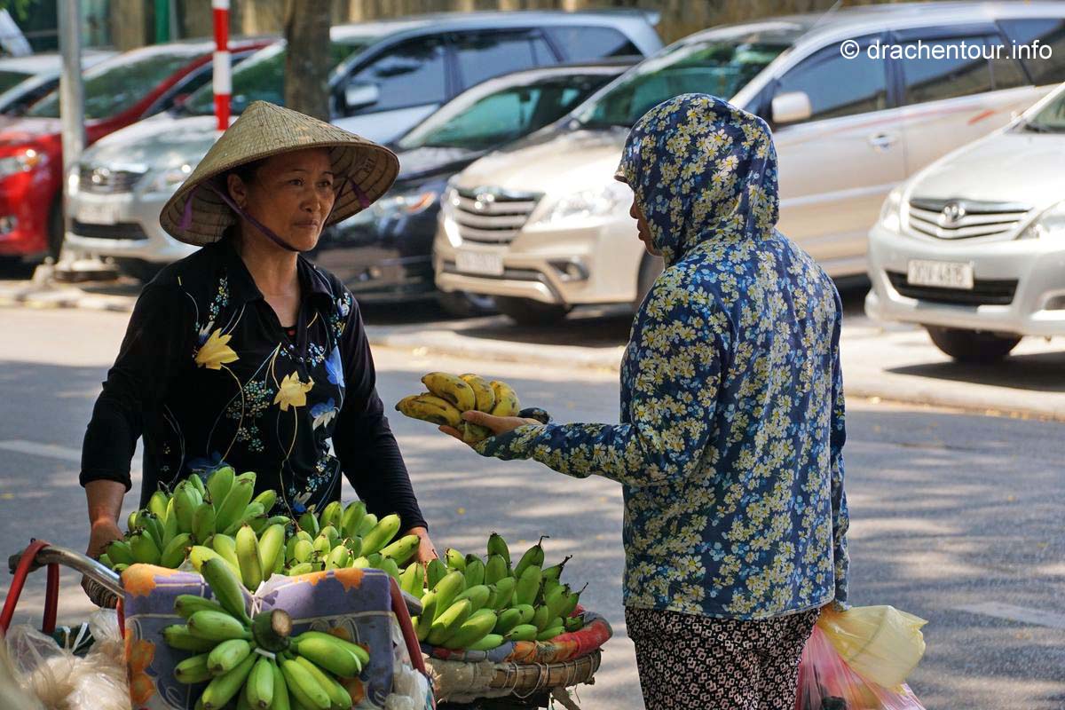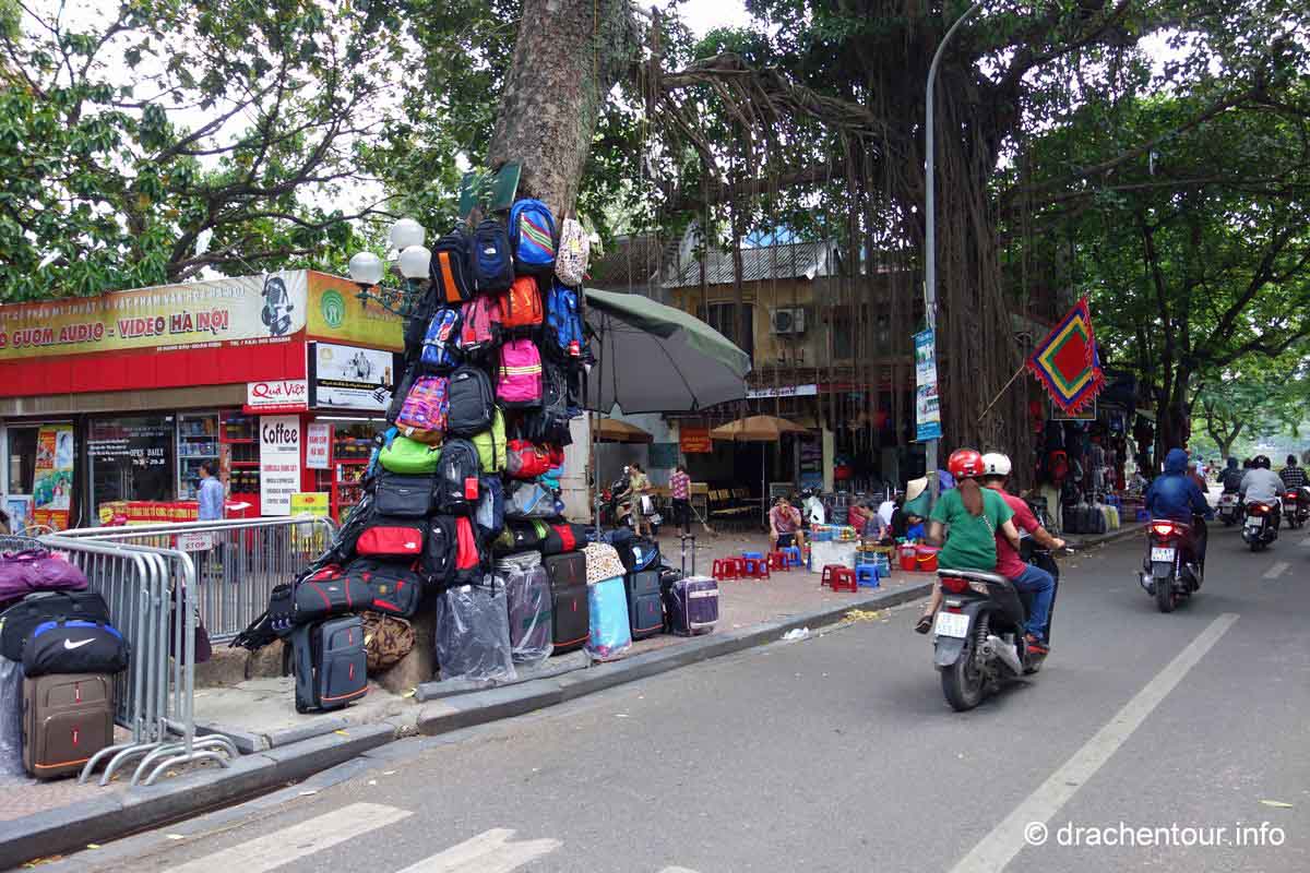 Am Nachmittag bummelten wir nochmals gemütlich durch die Altstadt und entdeckten hinter fast jeder Straßenecke wieder eine neue spannende Szene. Es kam uns so vor, als ob wir einen Dokumentation auf dem Fernsehkanal „ National Geographic “ mit dem Motto " exotische Straßenszenen in Hanoi " schauen würden - es war toll. So tauchten wir für einige Stunden wieder in das faszinierende Straßenleben der Stadt ein und beobachteten das Treiben und die Menschen. Abends zog ein Gewitter über uns und wir schafften es gerade noch halbwegs trockenen Fußes in ein Restaurant zu kommen, um wieder unsere vietnamesische Lieblingsspeise zu futtern. Der sehr heftige Regen setzte der fast unerträglichen Hitze - selbst abends um 20:00 Uhr - erstmal ein Ende und wir erfreuten uns der klaren und ganz leicht erfrischenden Luft. Beschwingt hüpften wir dann durch die vielen Wasserpfützen zu unserem Hotel zurück.