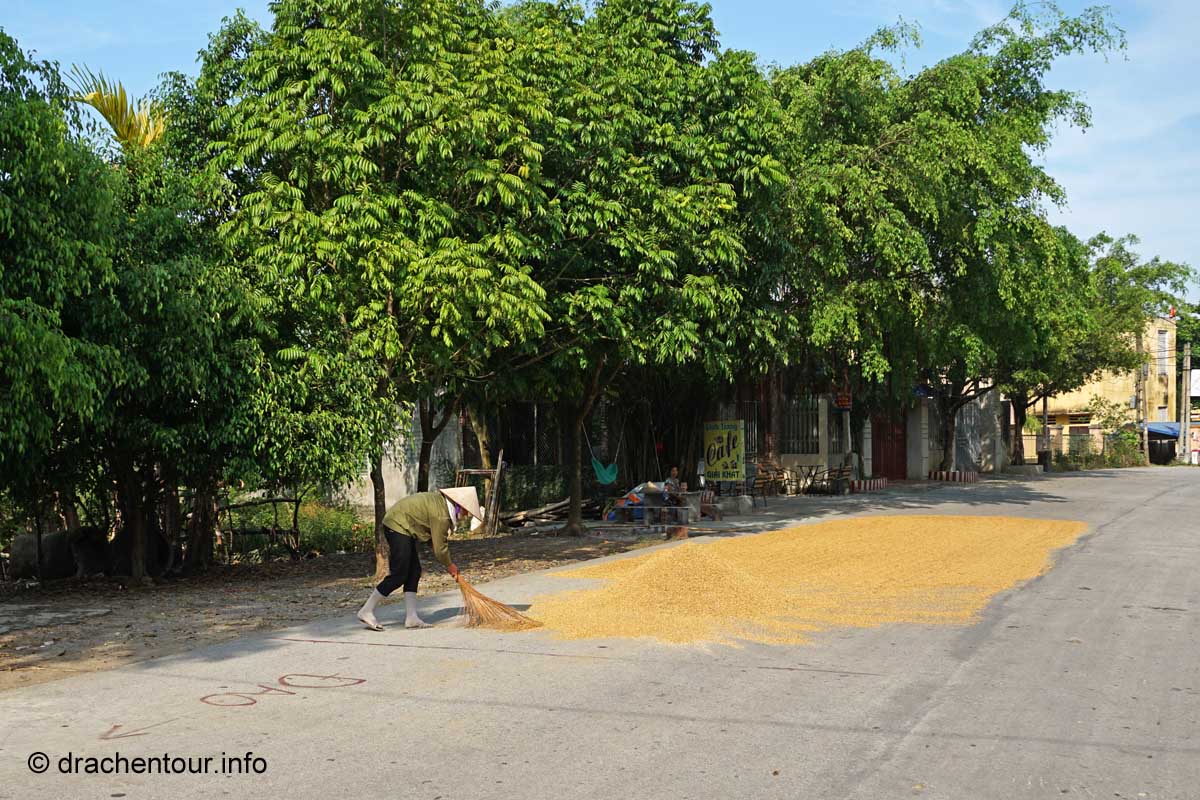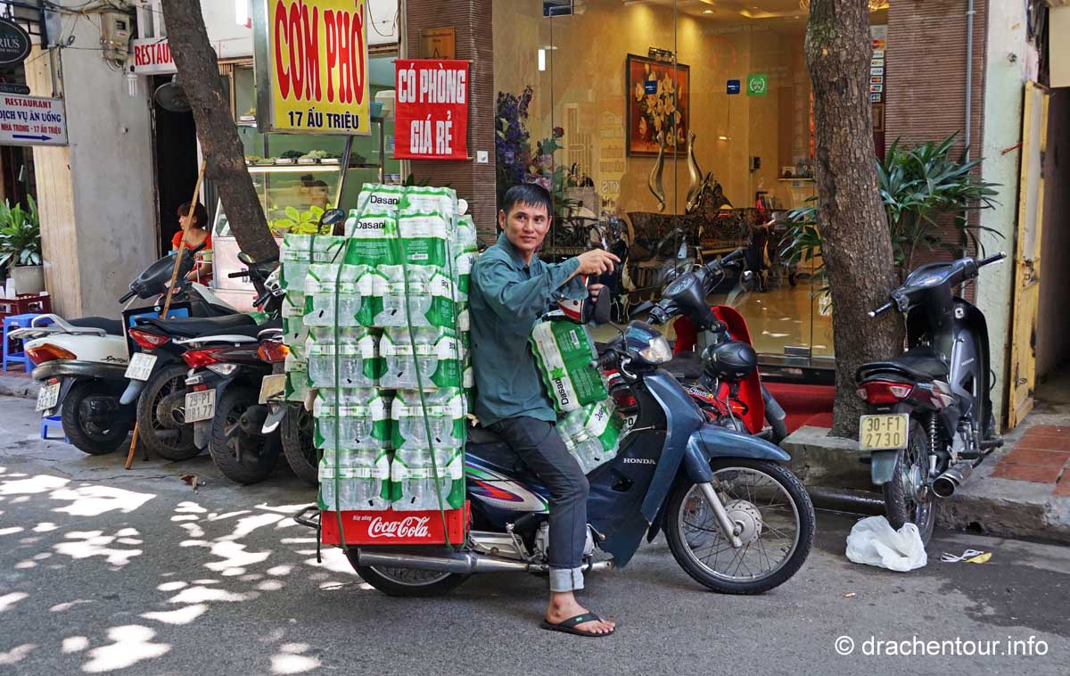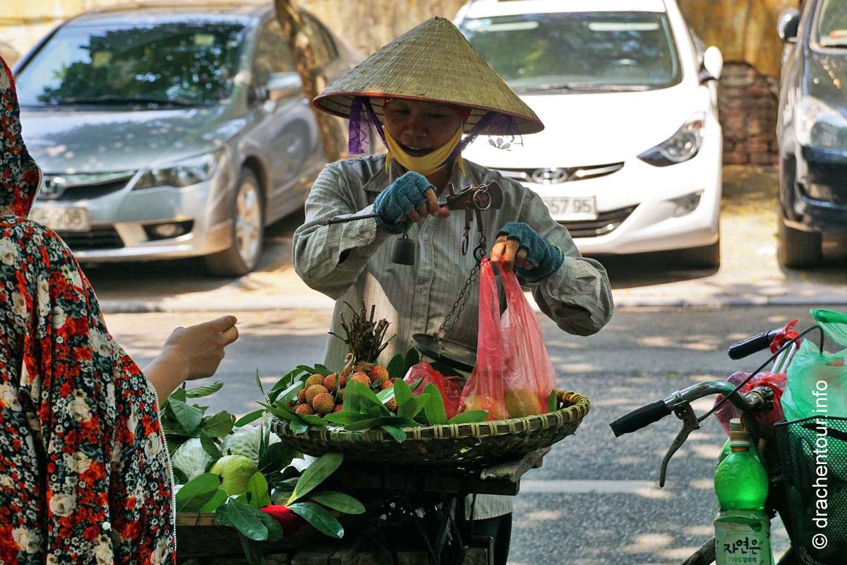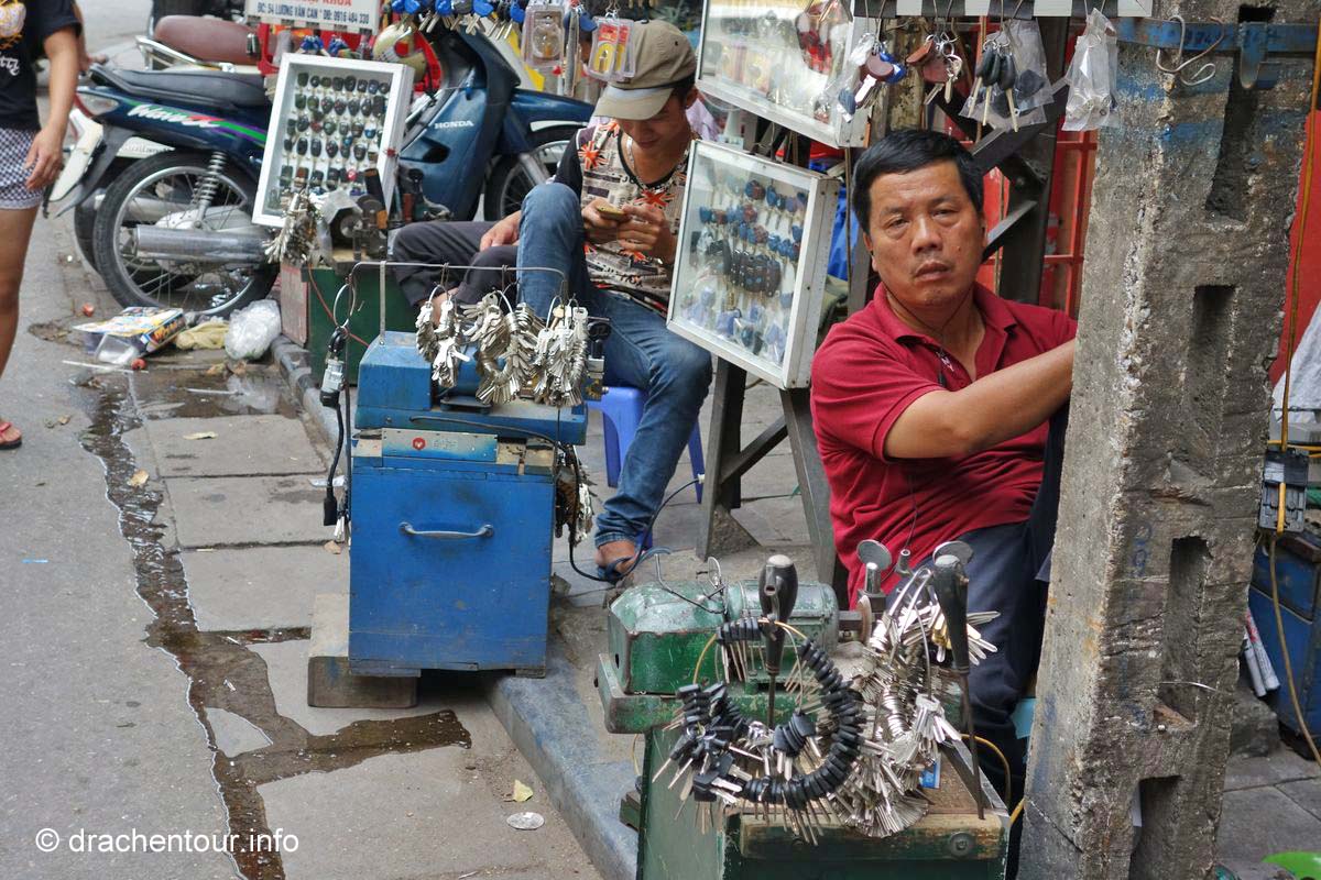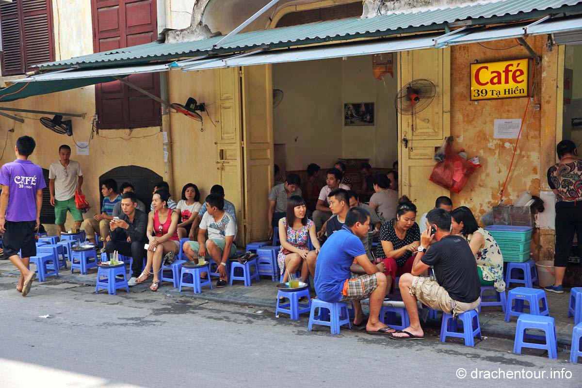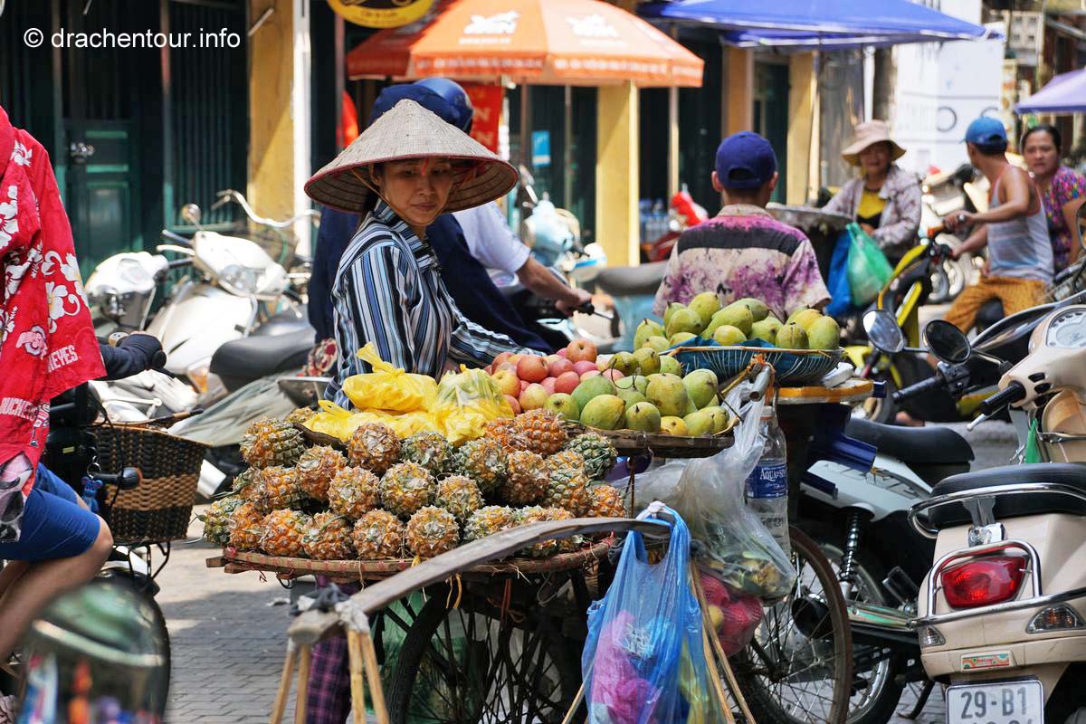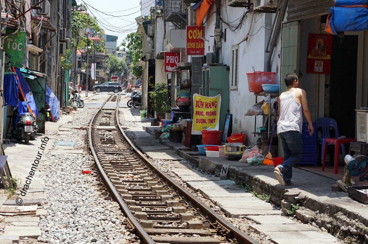 Am Nachmittag bummelten wir nochmals gemütlich durch die Altstadt und entdeckten hinter fast jeder Straßenecke wieder eine neue spannende Szene. Es kam uns so vor, als ob wir einen Dokumentation auf dem Fernsehkanal „ National Geographic “ mit dem Motto " exotische Straßenszenen in Hanoi " schauen würden - es war toll. So tauchten wir für einige Stunden wieder in das faszinierende Straßenleben der Stadt ein und beobachteten das Treiben und die Menschen. Abends zog ein Gewitter über uns und wir schafften es gerade noch halbwegs trockenen Fußes in ein Restaurant zu kommen, um wieder unsere vietnamesische Lieblingsspeise zu futtern. Der sehr heftige Regen setzte der fast unerträglichen Hitze - selbst abends um 20:00 Uhr - erstmal ein Ende und wir erfreuten uns der klaren und ganz leicht erfrischenden Luft. Beschwingt hüpften wir dann durch die vielen Wasserpfützen zu unserem Hotel zurück.