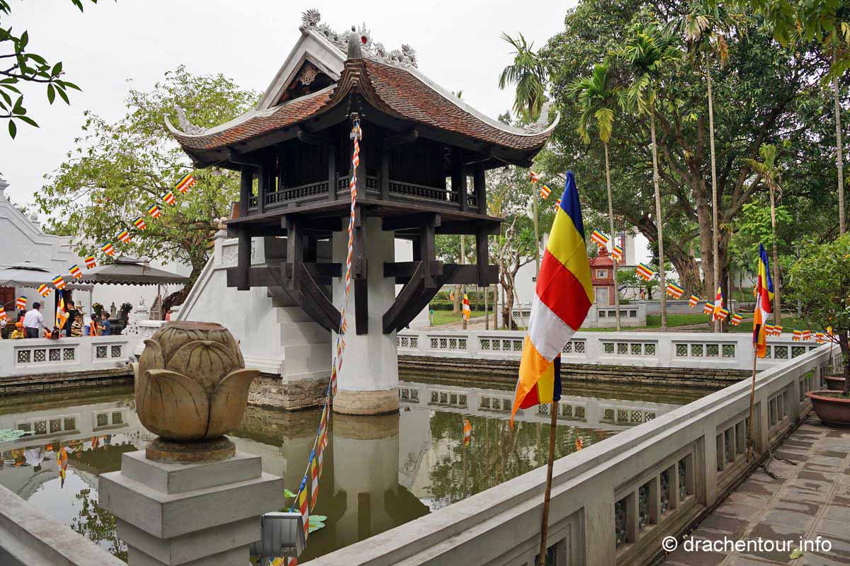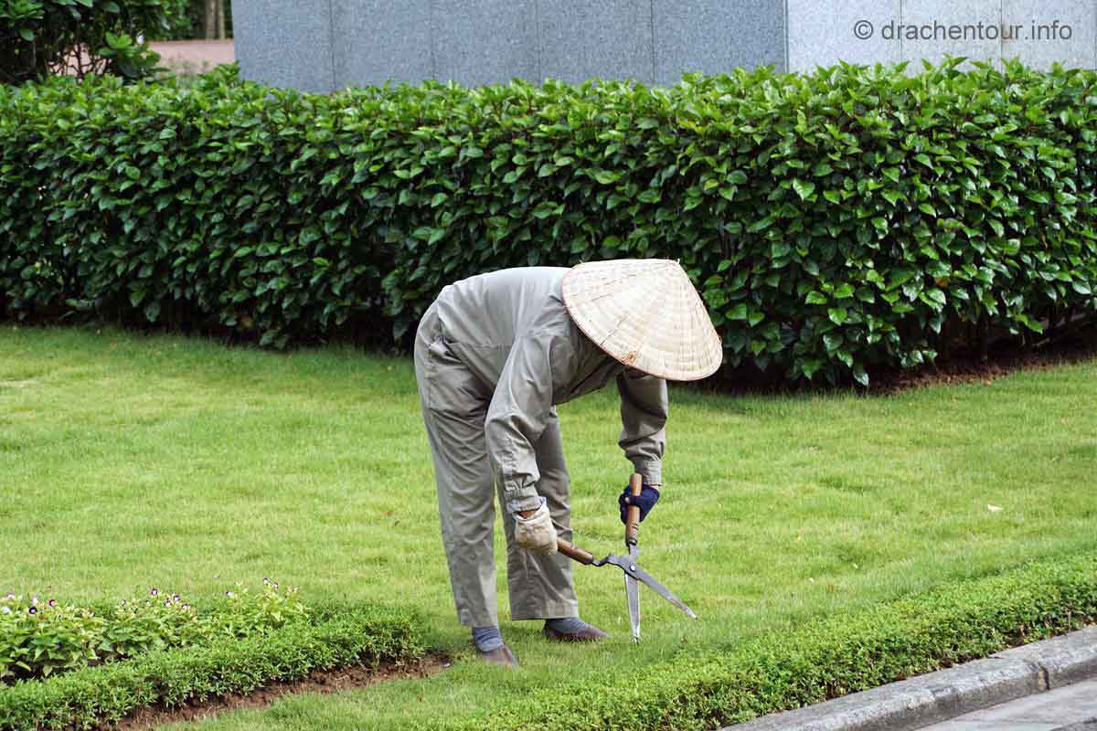 Wir wurden einmal um das Grab durchgeschleust und es herrschte absolute Ruhe und die Vietnamesen zollten Ho Chi Minh Respekt, es war ein spannendes Erlebnis. Wieder draußen spazierten wir durch die schön gepflegten Gärten, deren Rasen sogar mit der Schere gestutzt wurde, und kamen am Präsidentenpalast und am ehemaligen Wohnhaus von Ho Chi Minh vorbei. Als Abschluss besichtigten wir die bekannte Ein-Säulen-Pagode, die sehr hübsch inmitten eines kleinen Teiches errichtet wurde. Anschließend mussten wir uns aber ziemlich beeilen, um noch ein letztes Mal in den Genuss des herrlichen Frühstücksbuffets zu kommen. Den Rest des Tages ließen wir dann sehr ruhig weiter gehen, d.h. wir bummelten durch die Straßen, tranken Café, packten unsere Rucksäcke und gönnten uns zum letzten Mal unser vietnamesisches Lieblingsgericht.